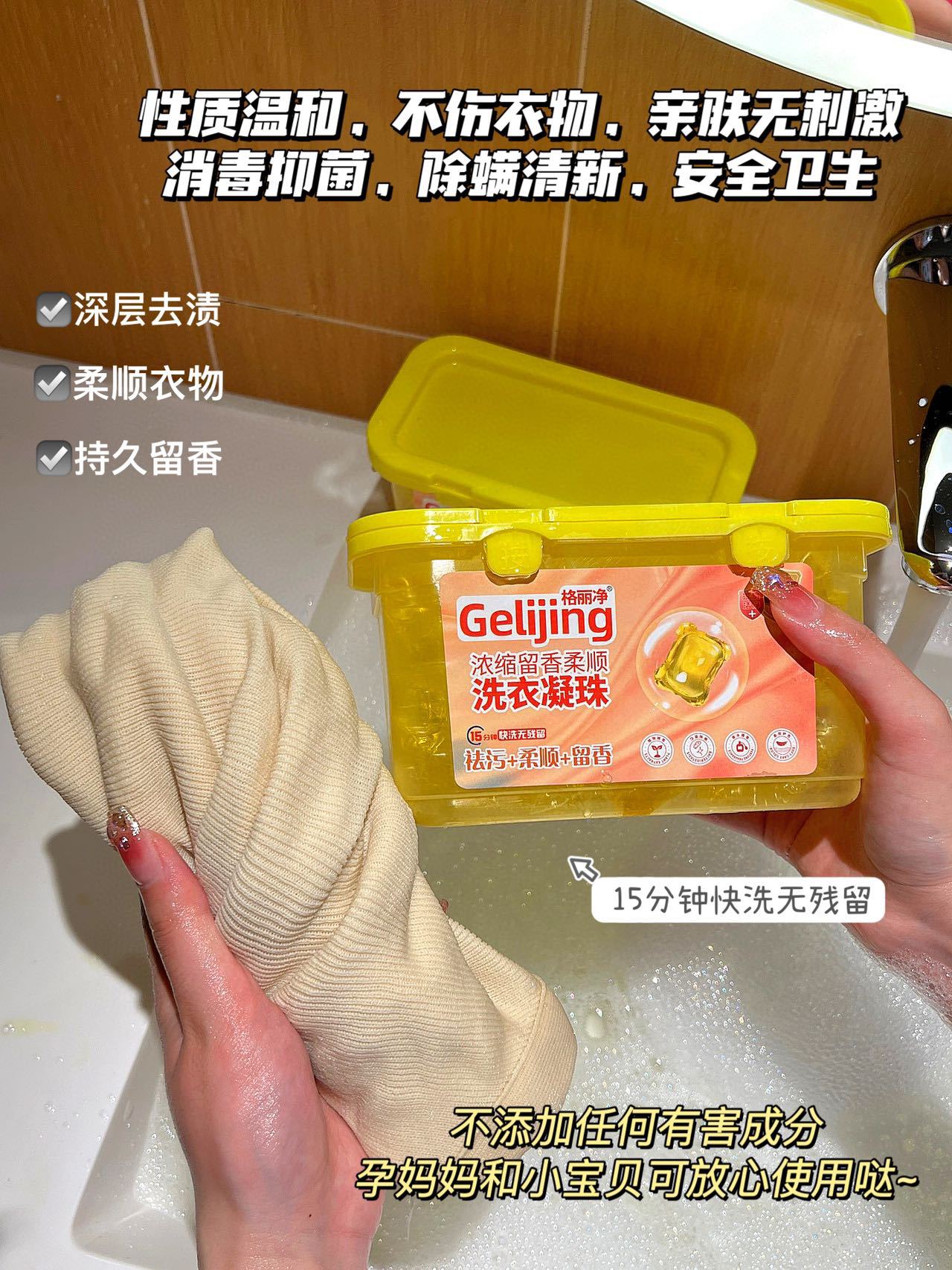 「19.9到手100颗!拼团同款」格丽净浓缩柔顺洗衣凝珠 居家日用香萘儿香型去污去渍洗衣球留香