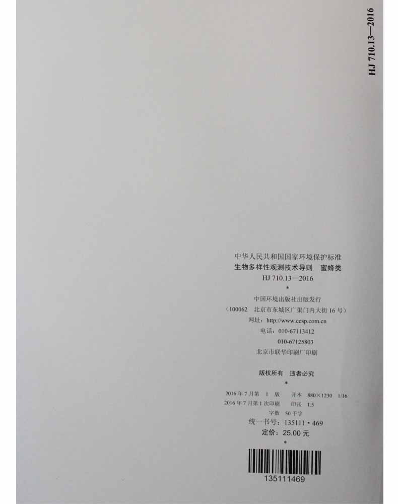 HJ 710.13-2016 生物多样性观测技术导则 蜂蜜类