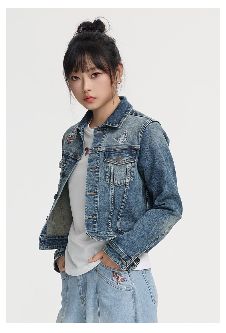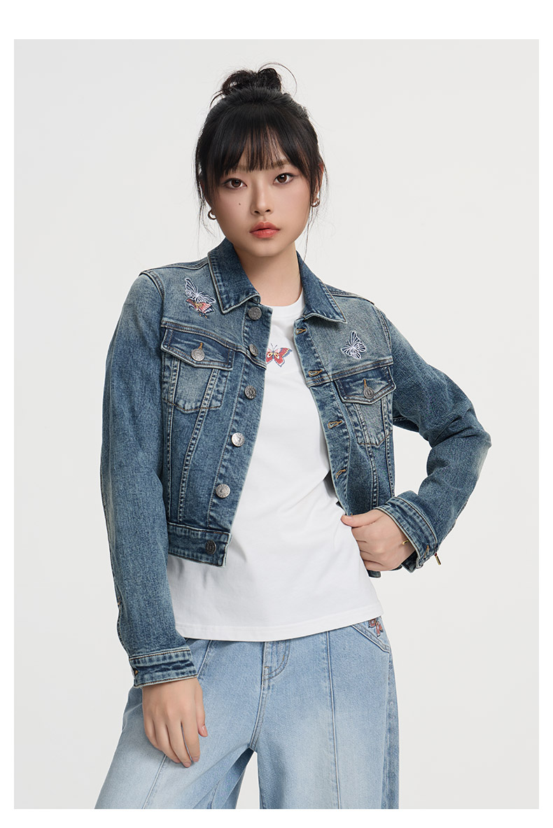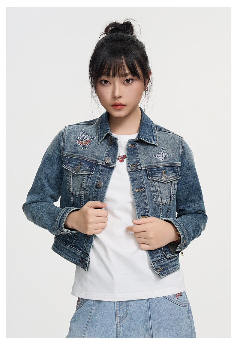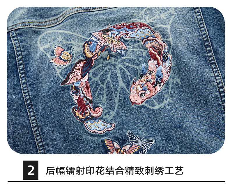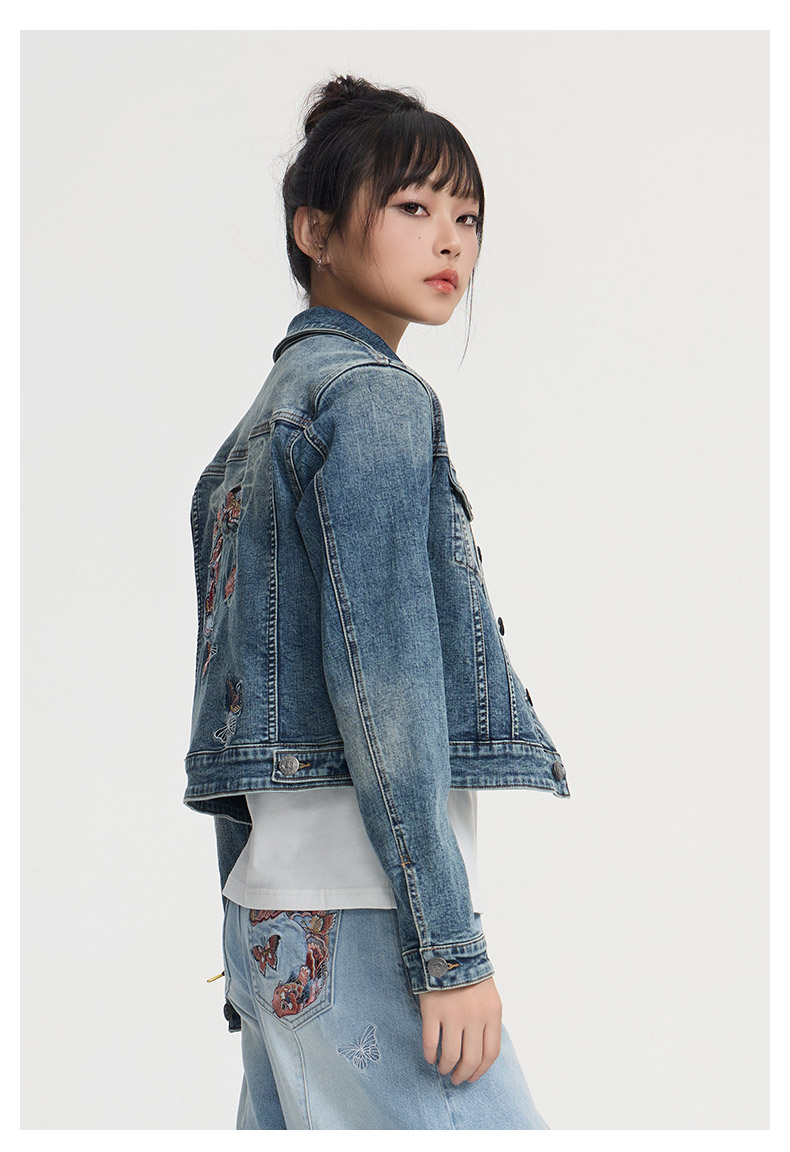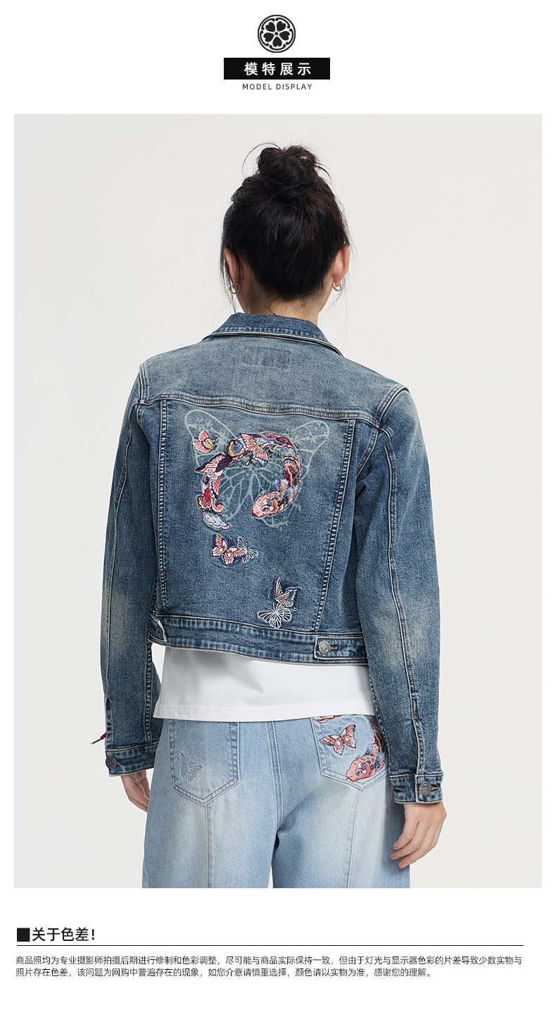 ONIARAI/鬼洗25春夏泥棒蓝女款化蝶福蛇绣花牛仔夹克潮 N340211
