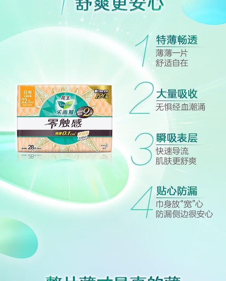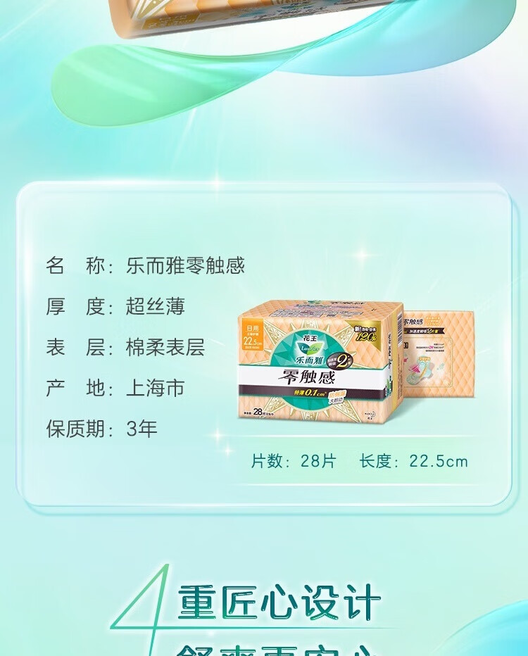乐而雅超丝薄倍护日用护翼型卫生巾22.5cm28片/包