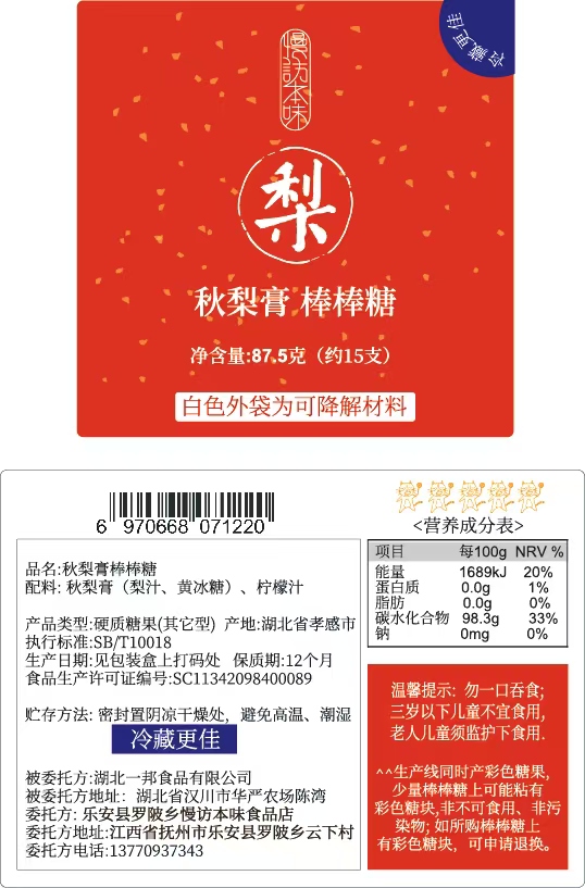 秋梨膏棒棒糖 87.5g/袋 (16支)【京东快递送货上门】