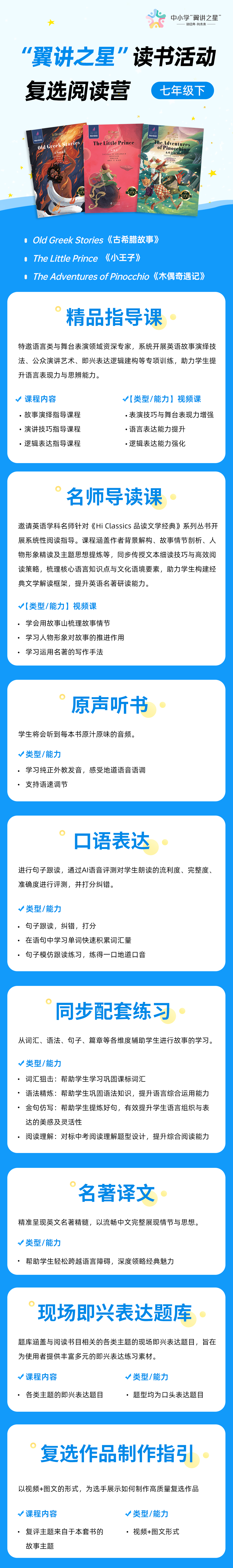 “翼讲之星”读书活动线上阅读营(七年级下册)
