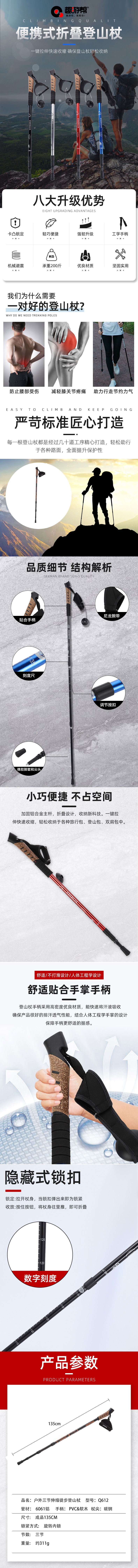 趣游帮 户外三节伸缩徒步登山杖 Q612