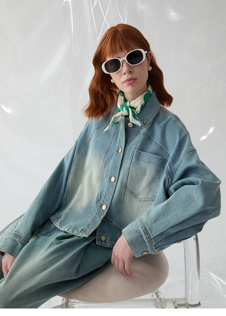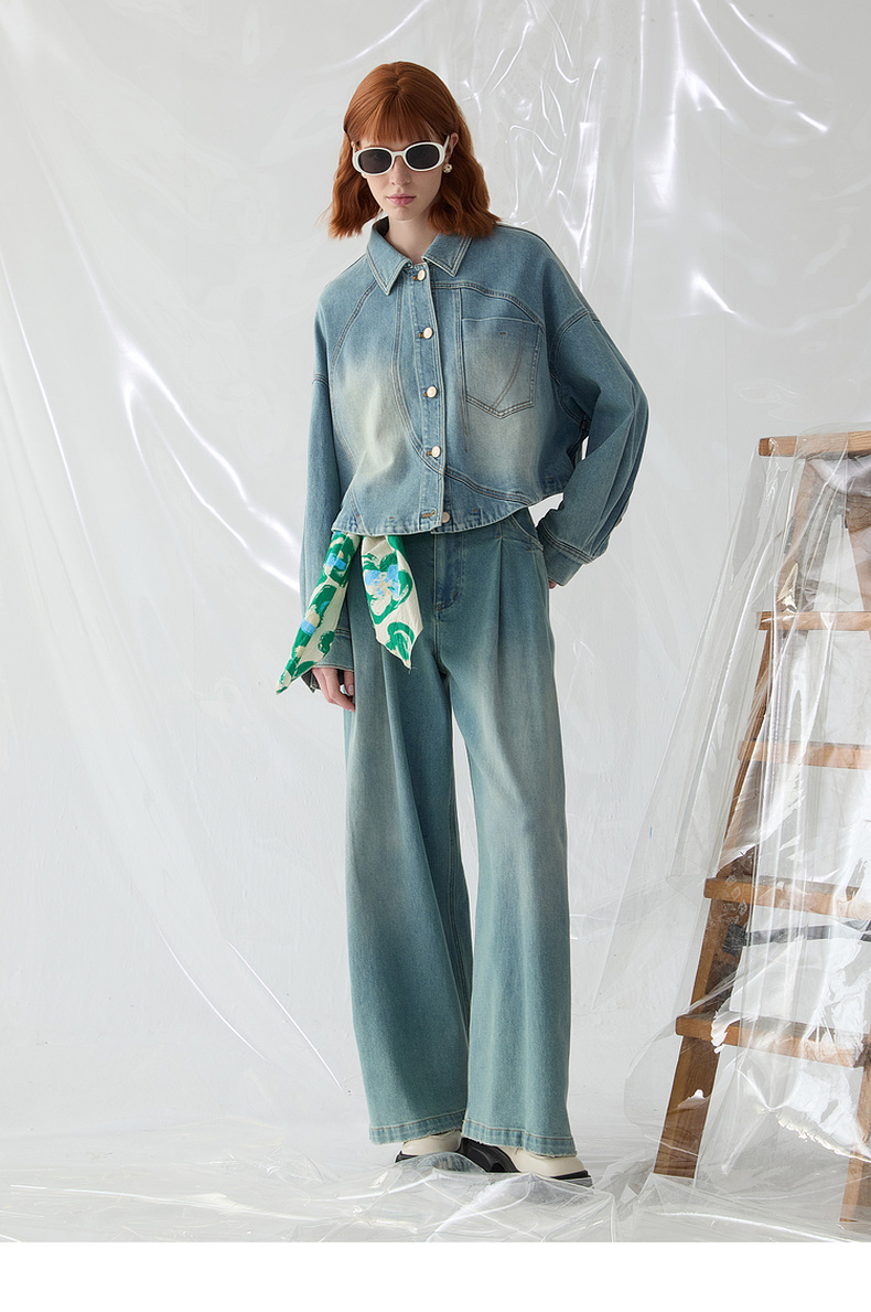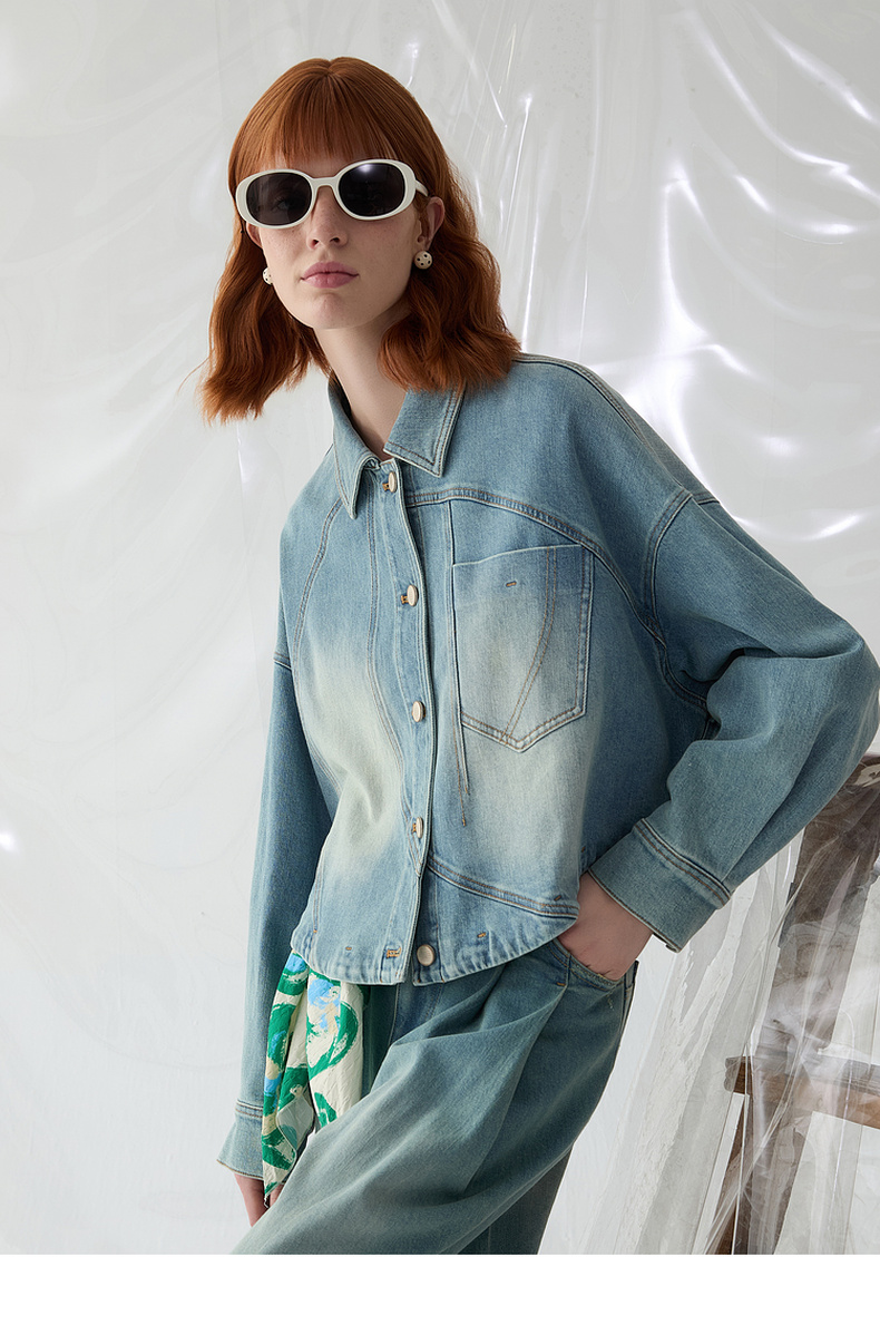 谜底短牛仔外套长袖2025春新品复古文艺风百搭显高夹克251MW0021