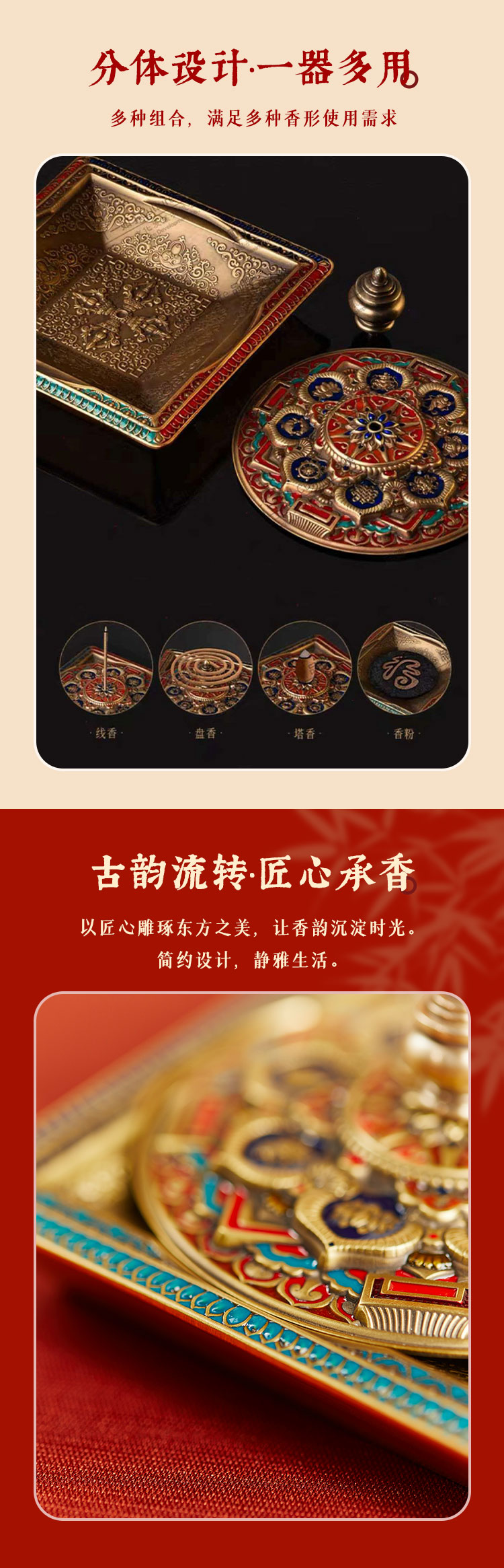 牛首山文创梵轮香承香插黄铜装饰摆件家用室内香薰炉礼盒送客户