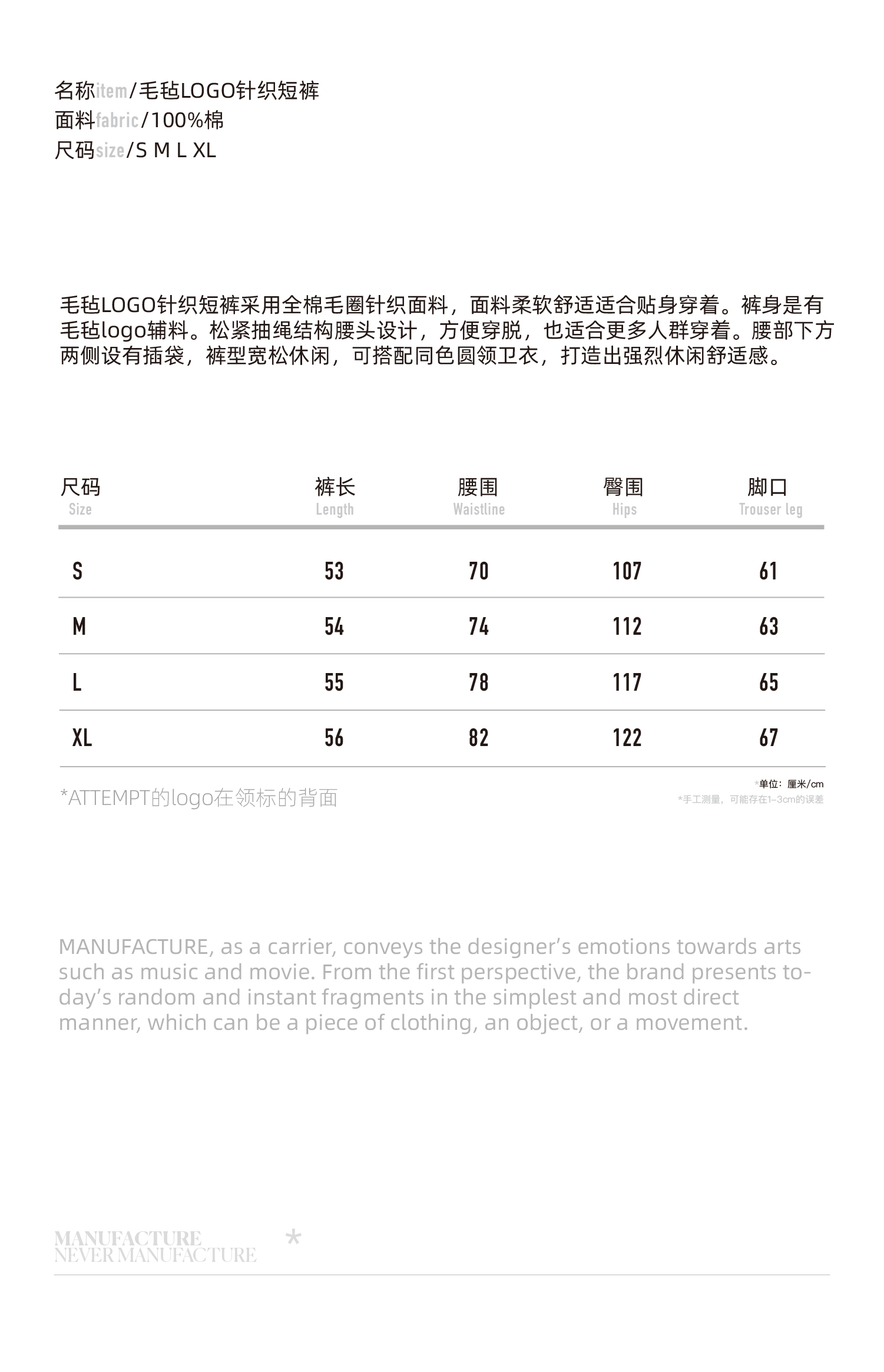 MANUFACTURE BY ATTEMPT 毛毡LOGO针织短裤