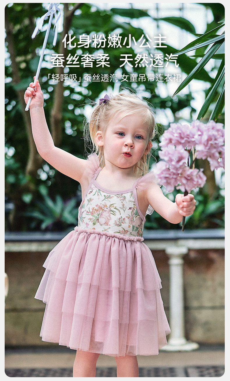 【宝宝服饰】嫚熙童装蚕丝吊带连衣裙小女孩公主裙女宝宝长裙