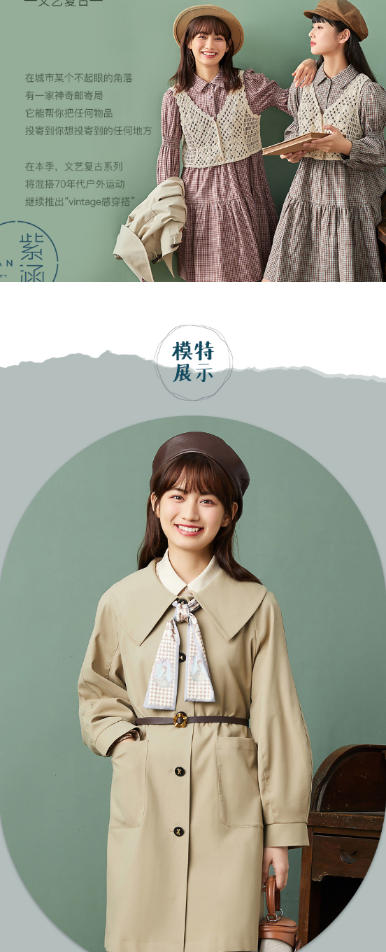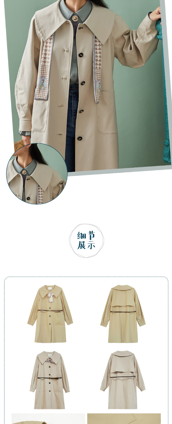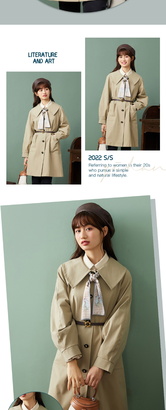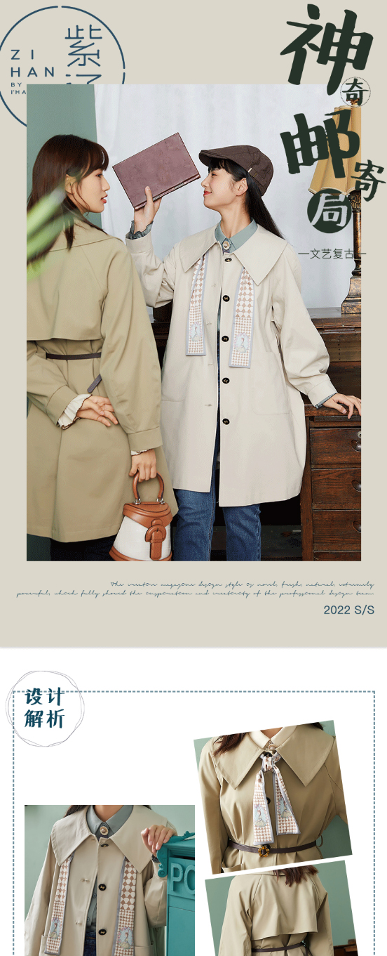 ZIHAN紫涵复古收腰翻领风衣2022春新品中长款收腰连衣裙式外套 Z2Z01AS157