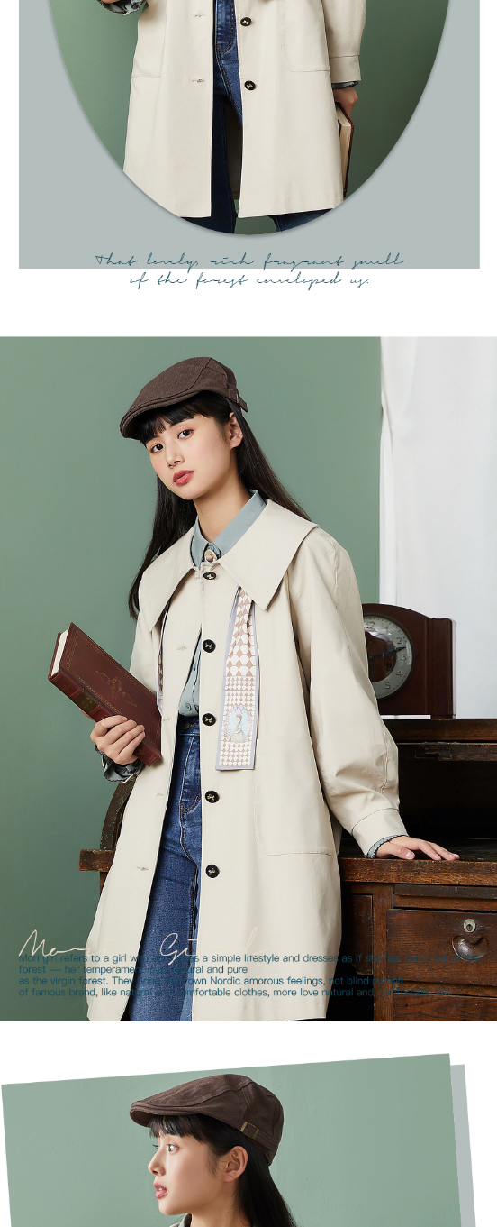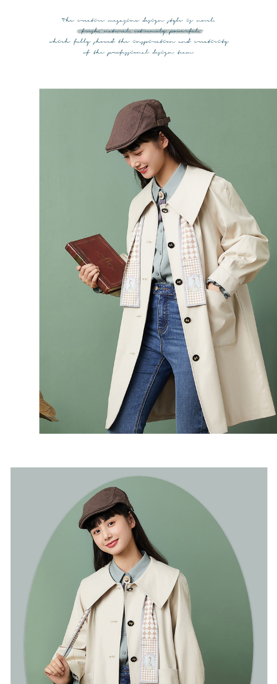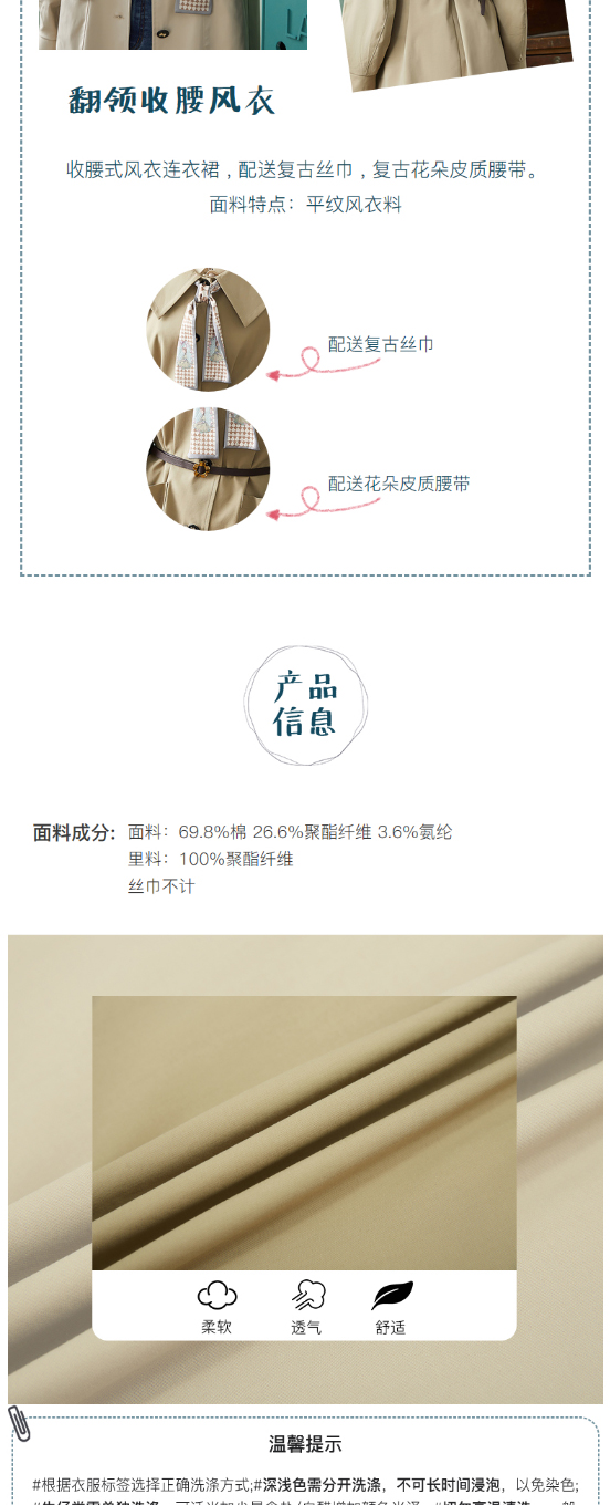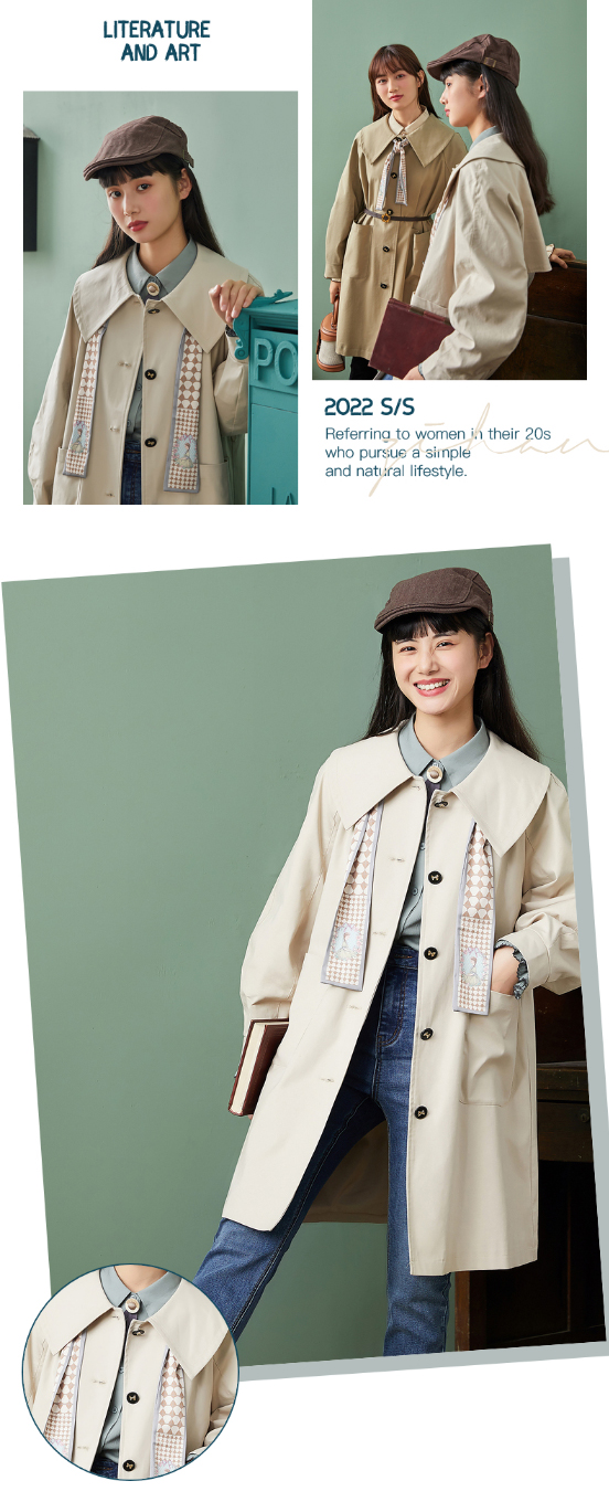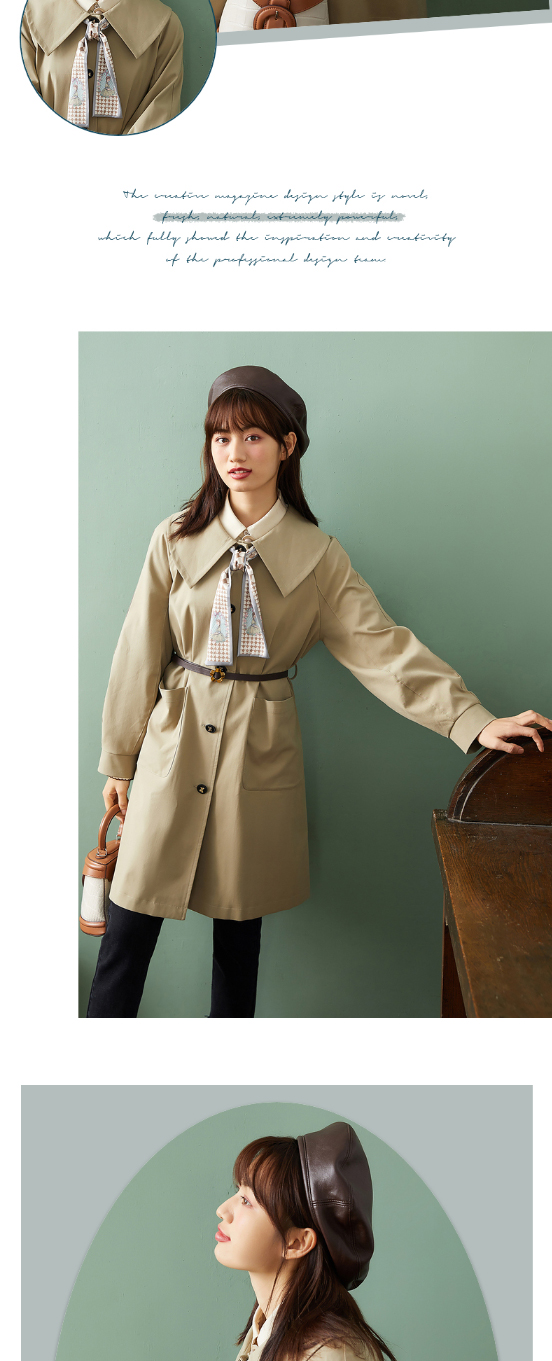 ZIHAN紫涵复古收腰翻领风衣2022春新品中长款收腰连衣裙式外套 Z2Z01AS157