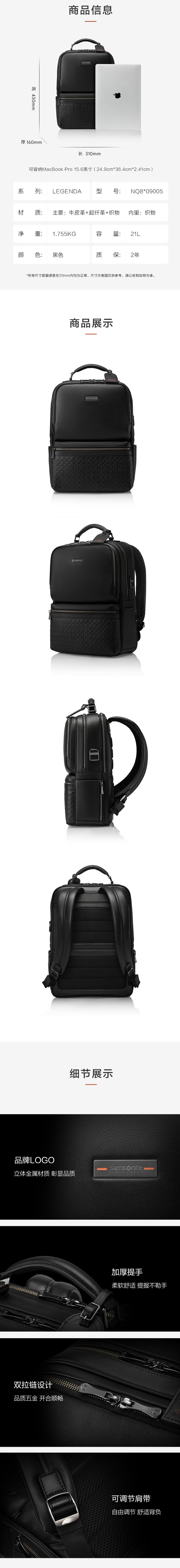 新秀丽LEGENDA高端压纹牛皮革商务双肩包NQ8*005