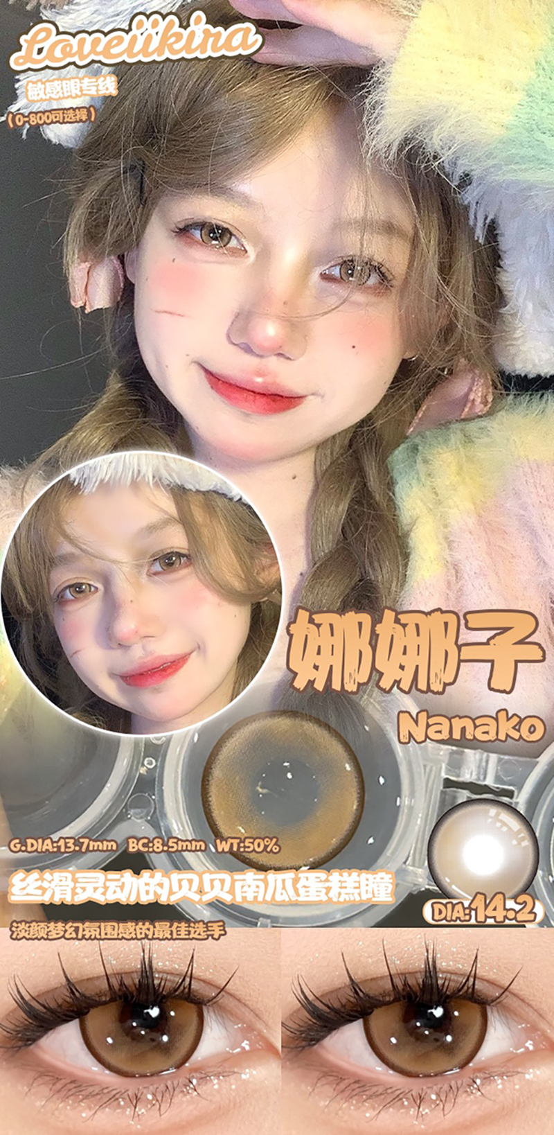 艾吉拉Loveiikira 娜娜子 日抛 十片 14.2mm 参考着色13.7mm 基弧8.5 含水50% 新锐国货