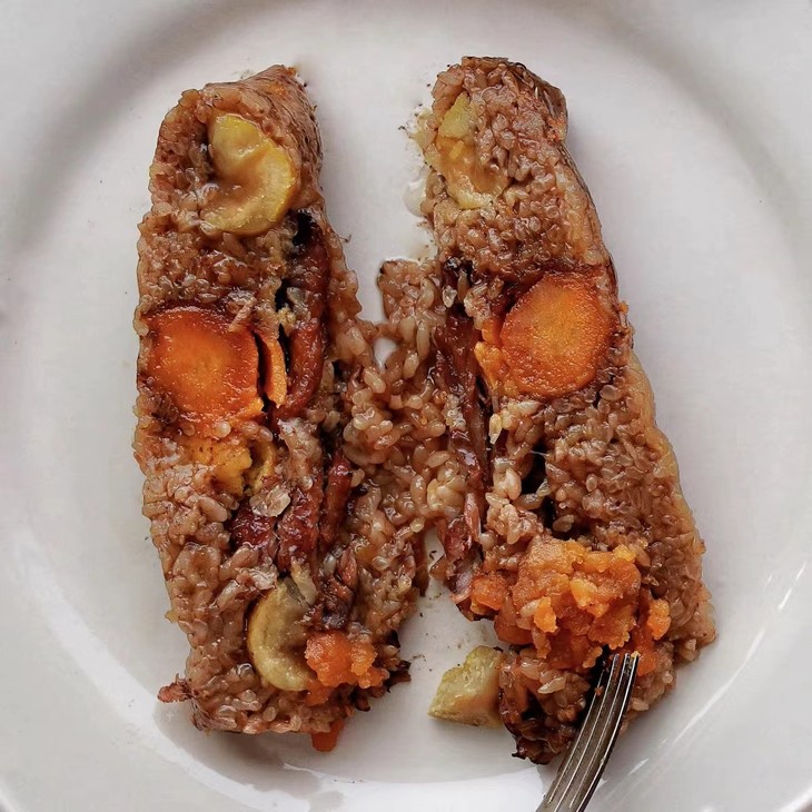 枕头粽又称子为:四角粽 跟市面上的三角粽子有一定区别 一个的重量足足半斤.一个吃下去管饱不是问题!