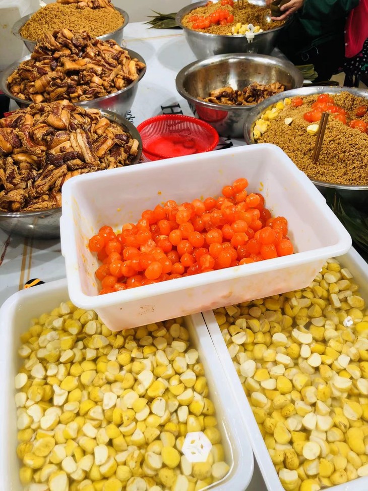 大块的鲜肉加上附带的蛋黄 板栗 排骨等 让一个个粽子内容丰富了起来!