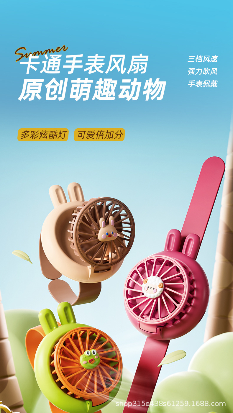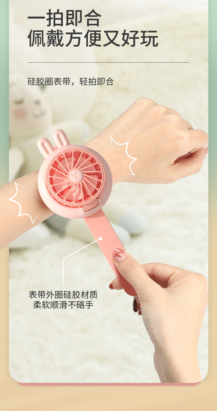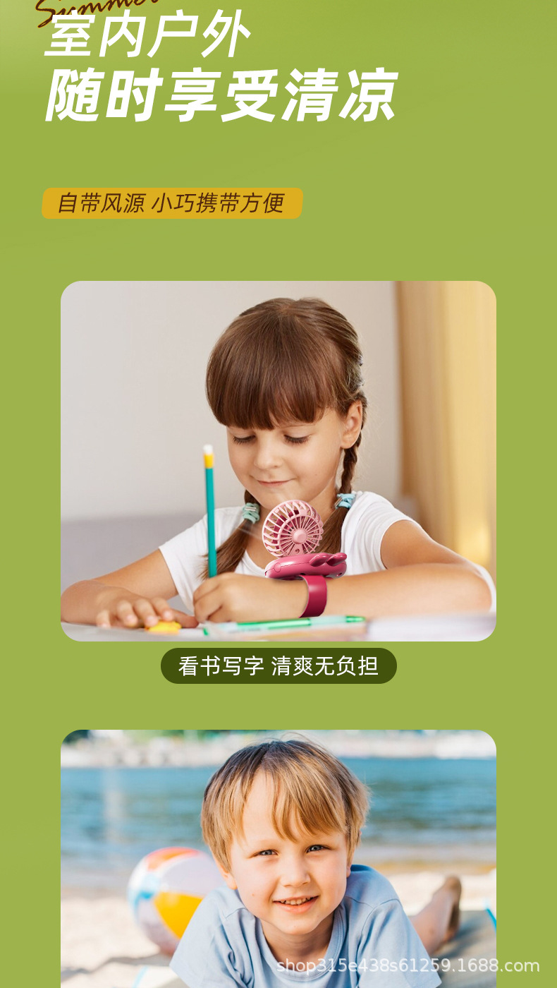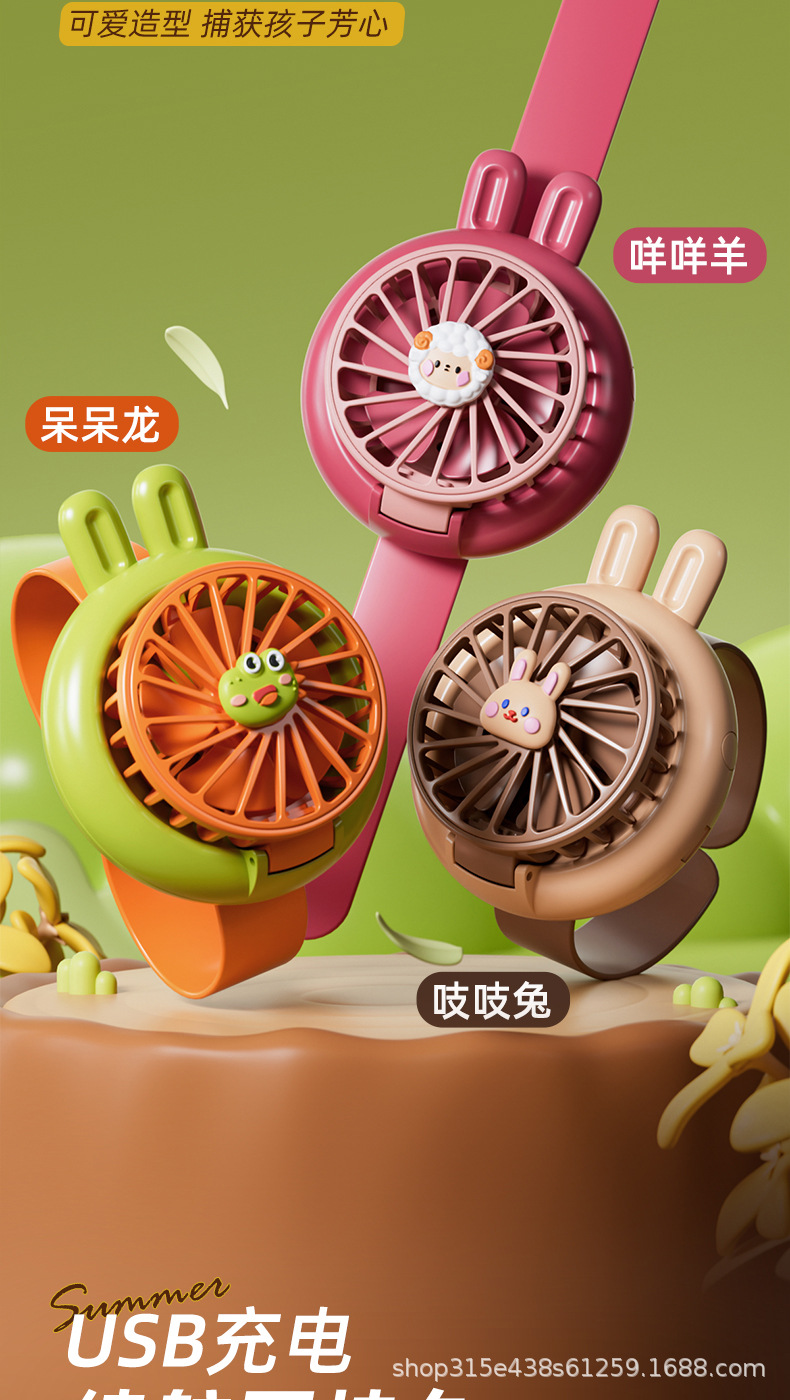新款手持迷你小风扇USB卡通手表风扇便携式儿童户外充电风扇批发