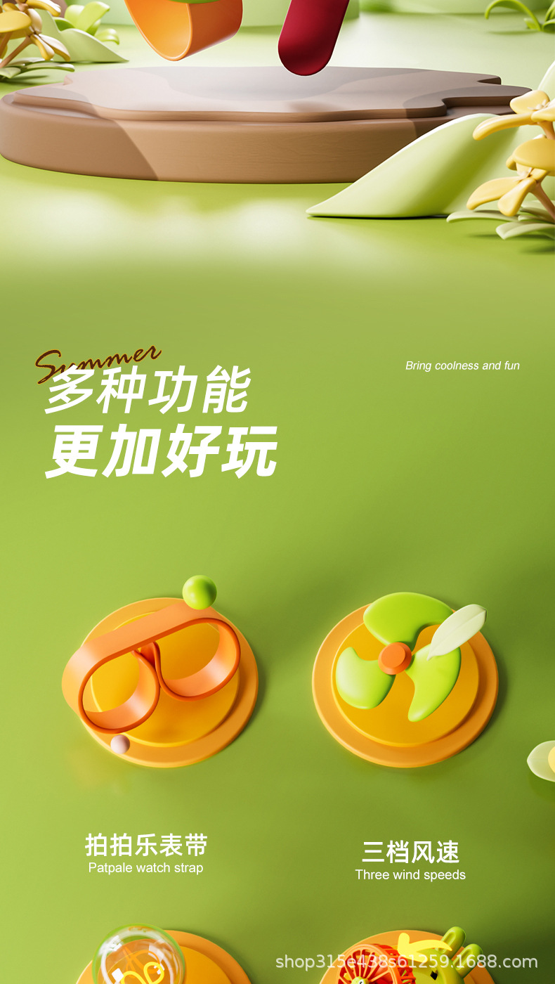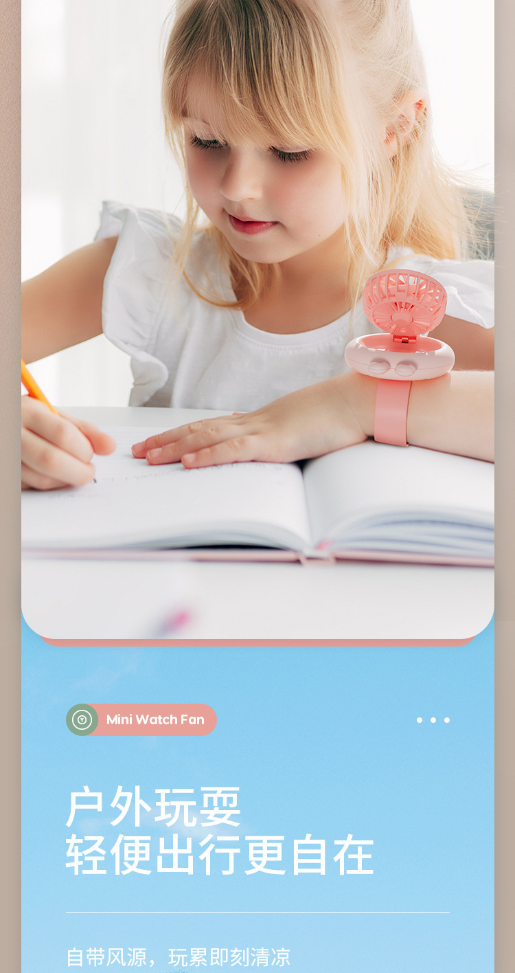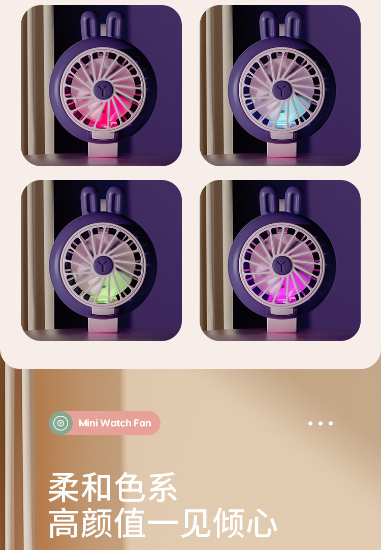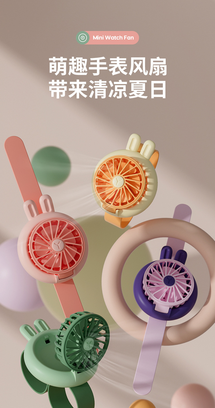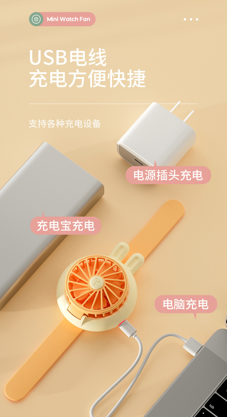 新款手持迷你小风扇USB卡通手表风扇便携式儿童户外充电风扇批发