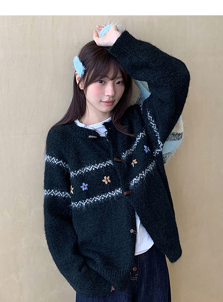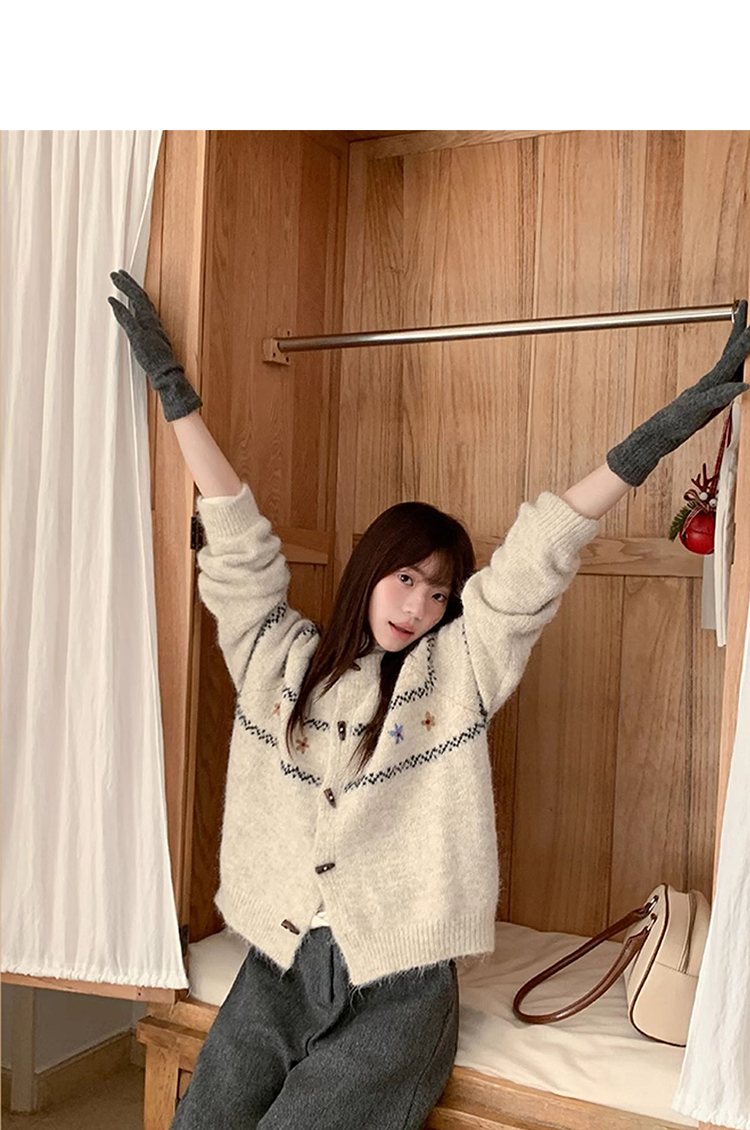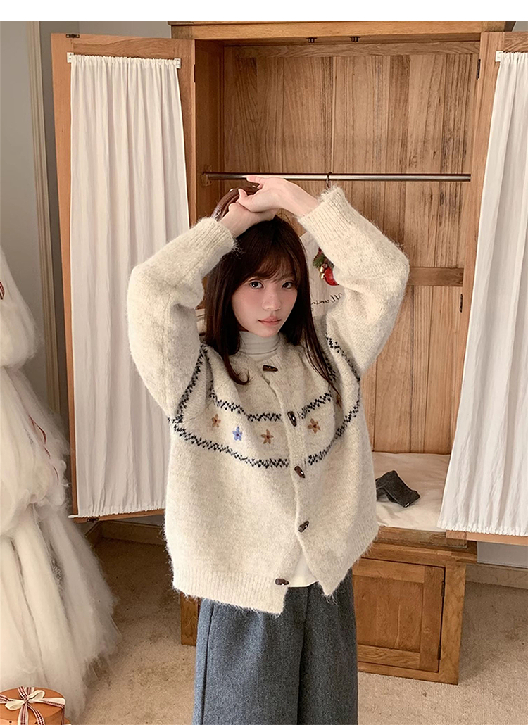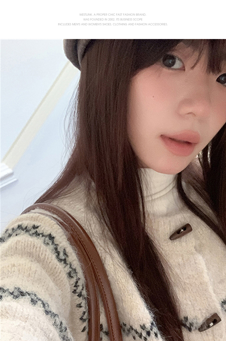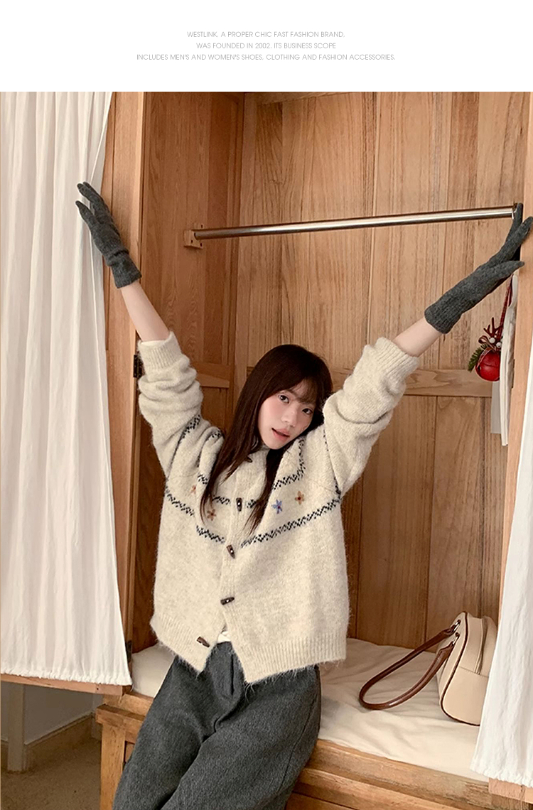 西遇费尔岛针织外套女秋季新款慵懒风牛角扣宽松毛衣开衫SS051541