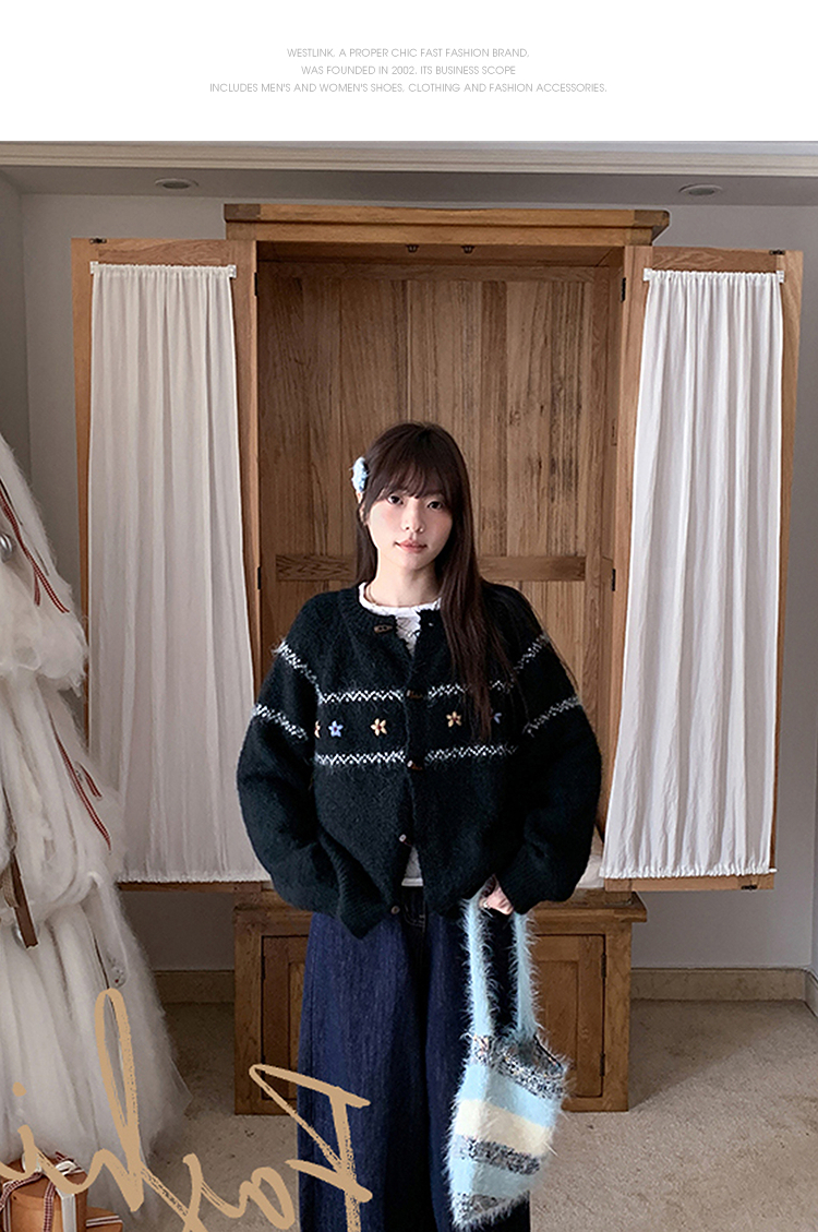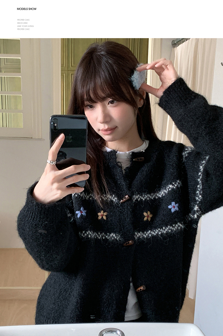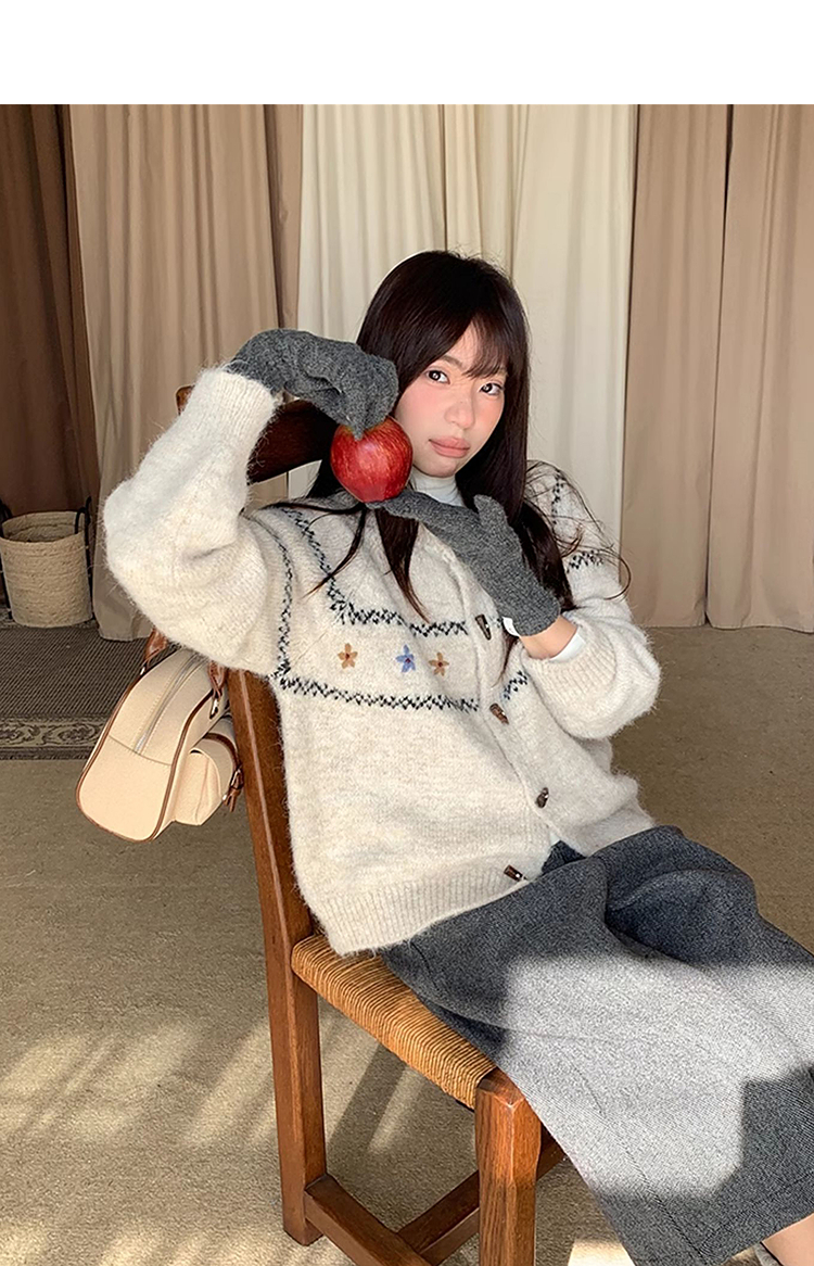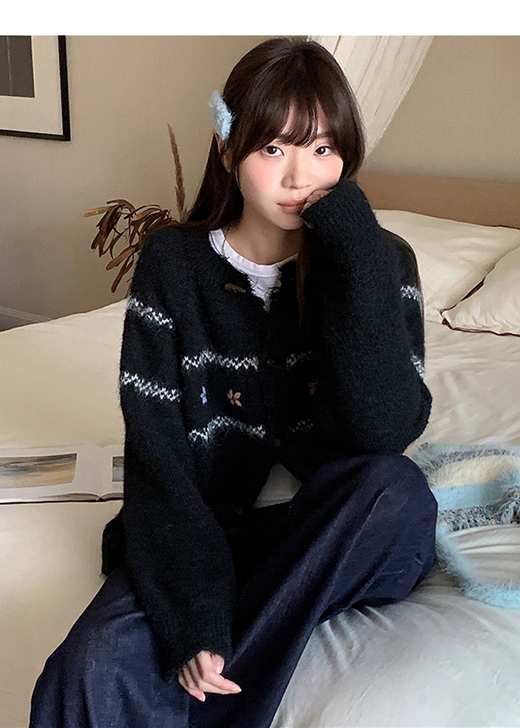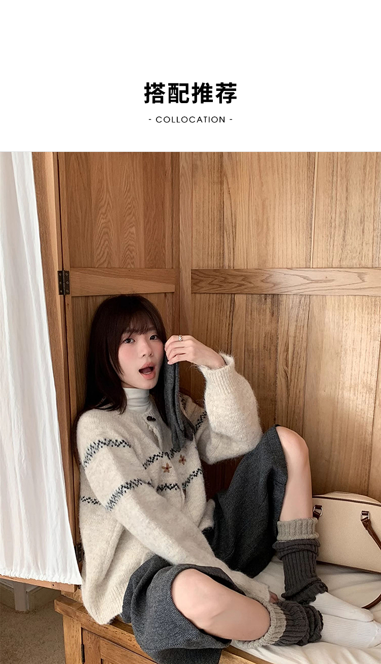 西遇费尔岛针织外套女秋季新款慵懒风牛角扣宽松毛衣开衫SS051541