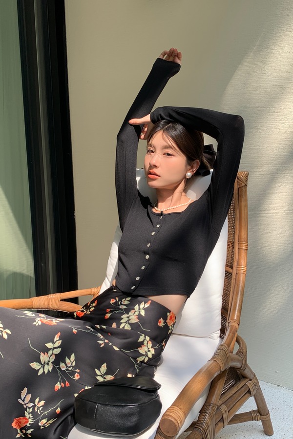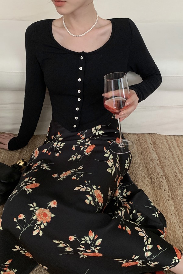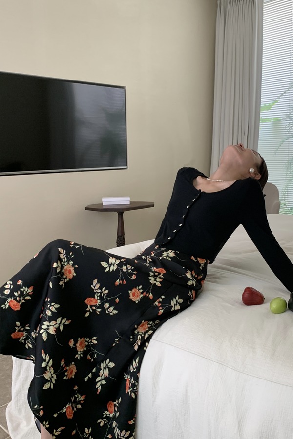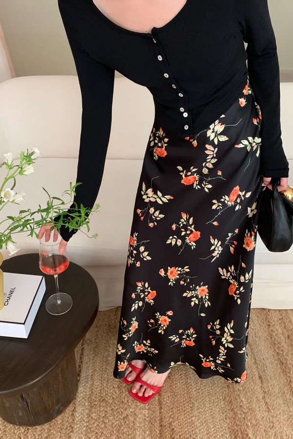 L.Fleuri 优雅浪漫花朵印花高腰长款半裙 18229