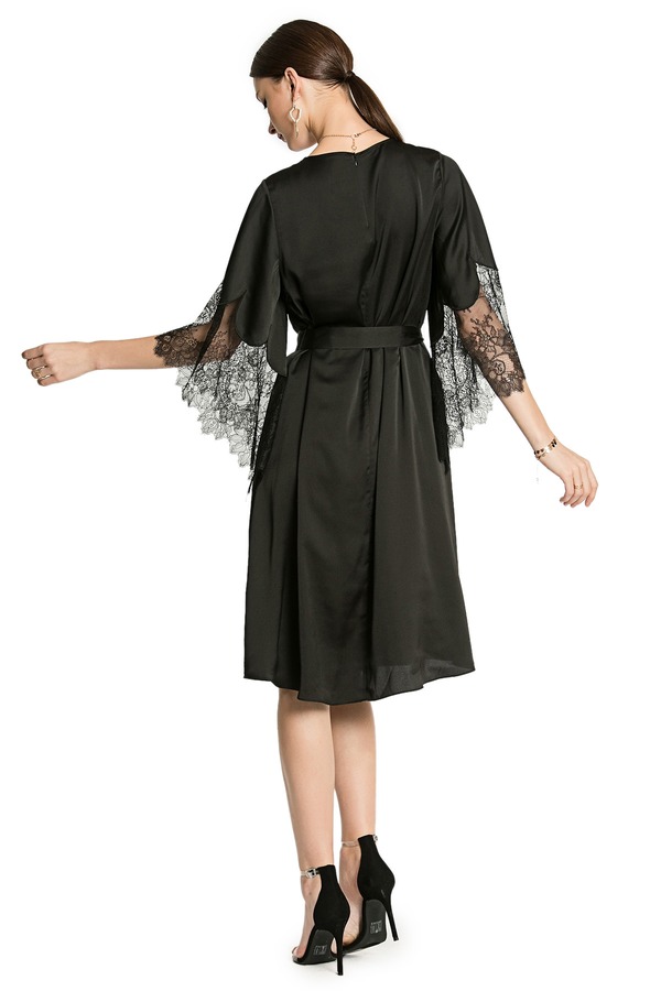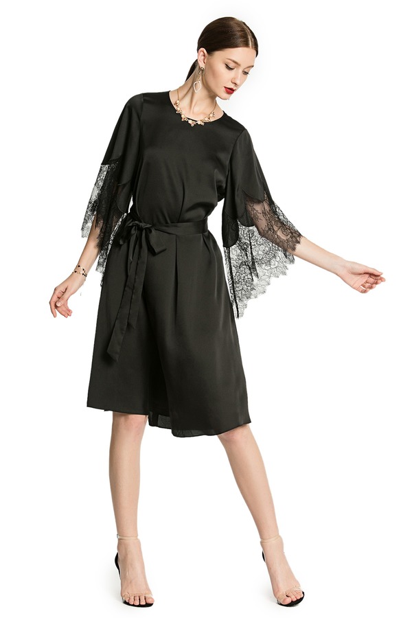 NOIR 蕾丝宽袖束腰连衣裙 2911