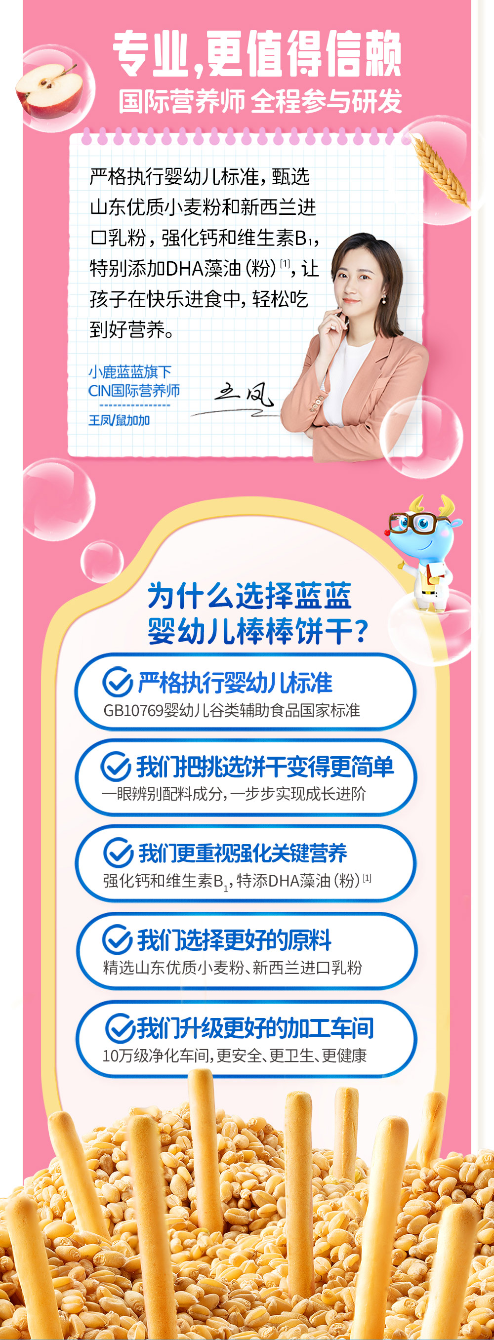 - 小鹿蓝蓝始终致力于为主人提供更优质、高性价比的产品、服务和体验,共同打造婴童零食生态圈,提升母婴行业的国货自信,守护和陪伴新一代儿童健康、快乐地成长。