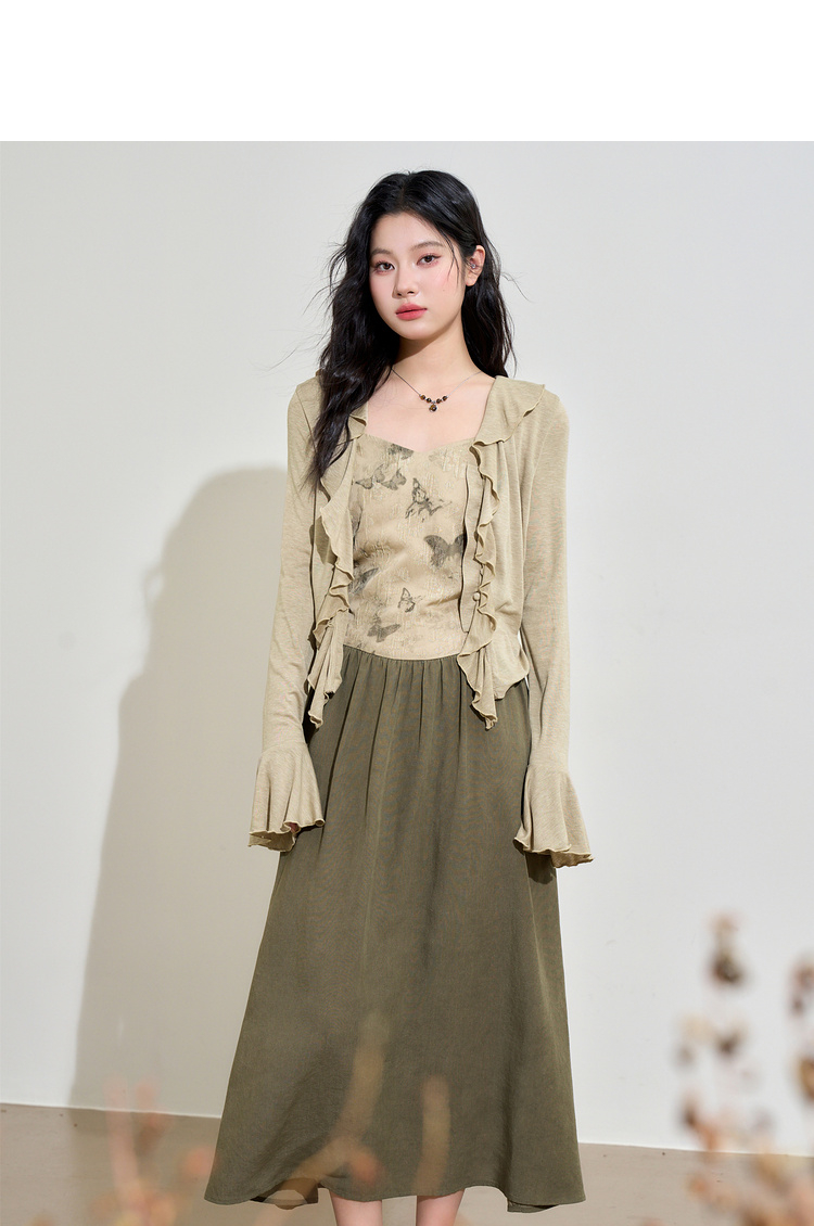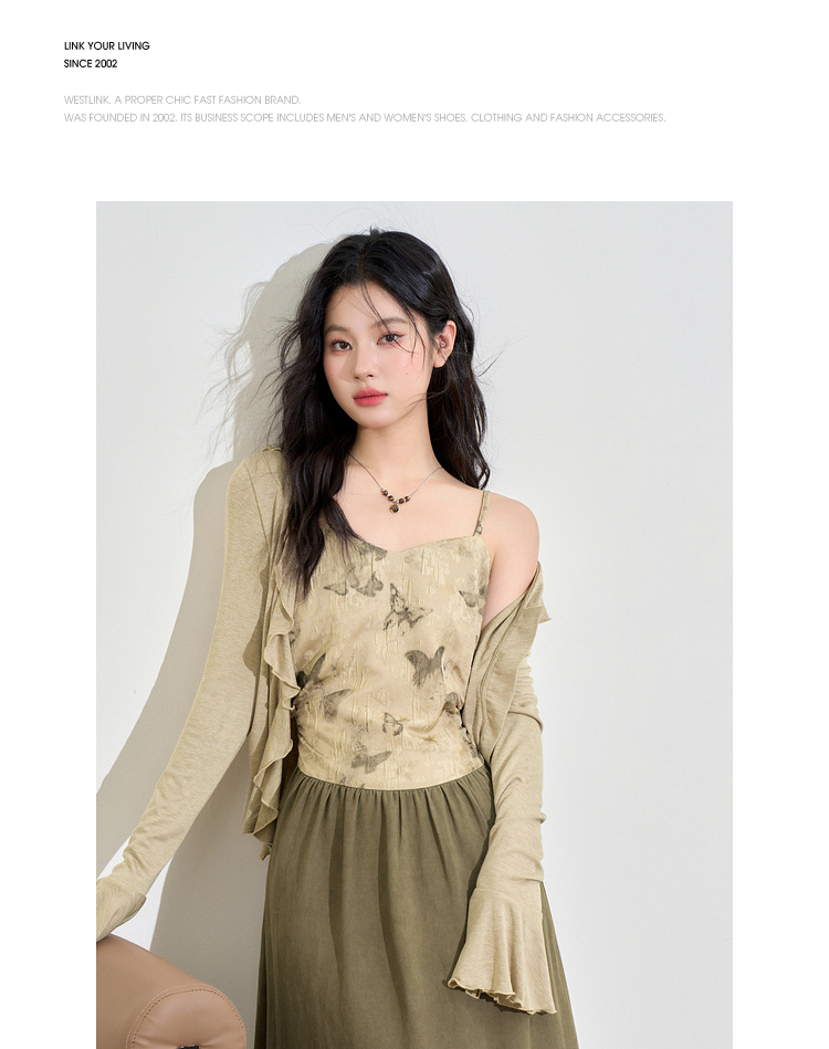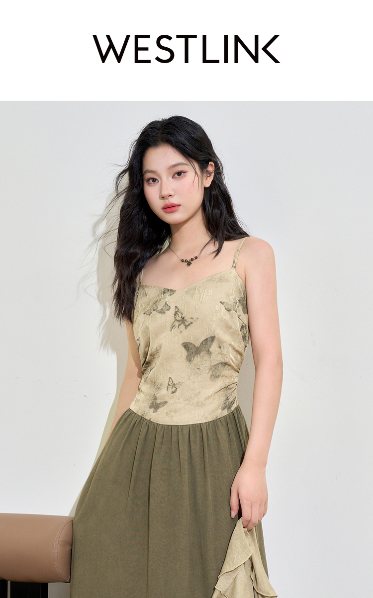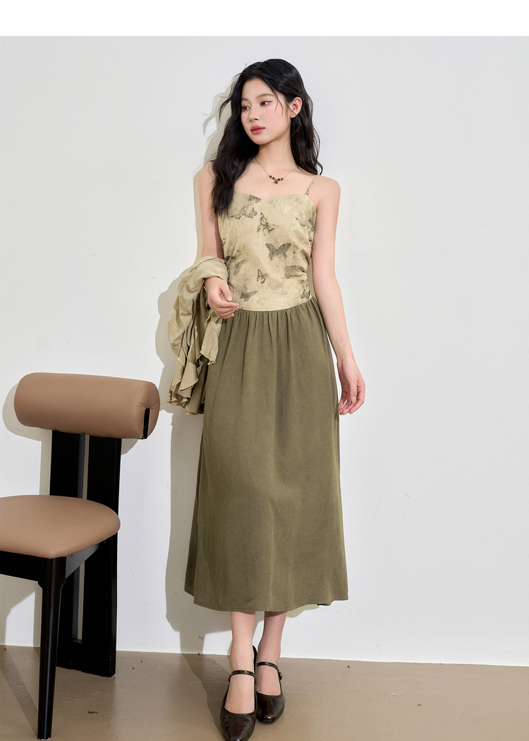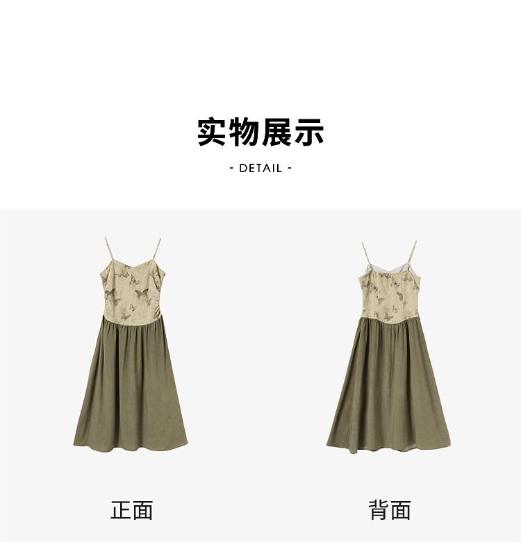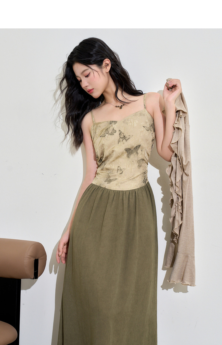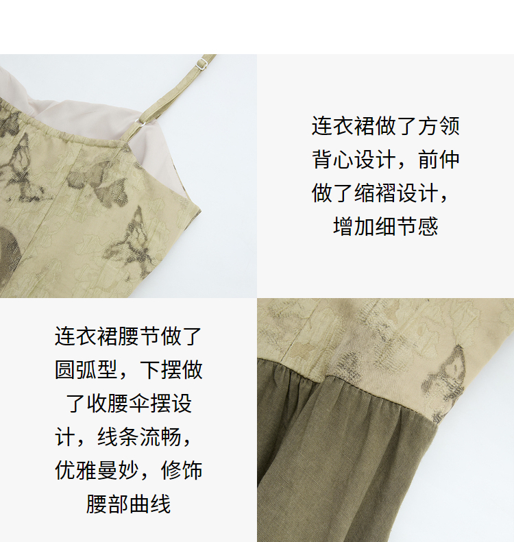 新中式国风天丝蝴蝶提花连衣裙女早春复古优雅拼接长裙V3442397