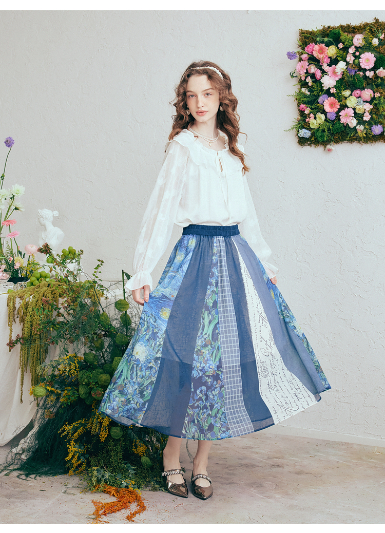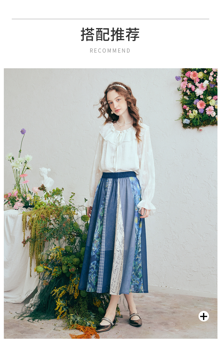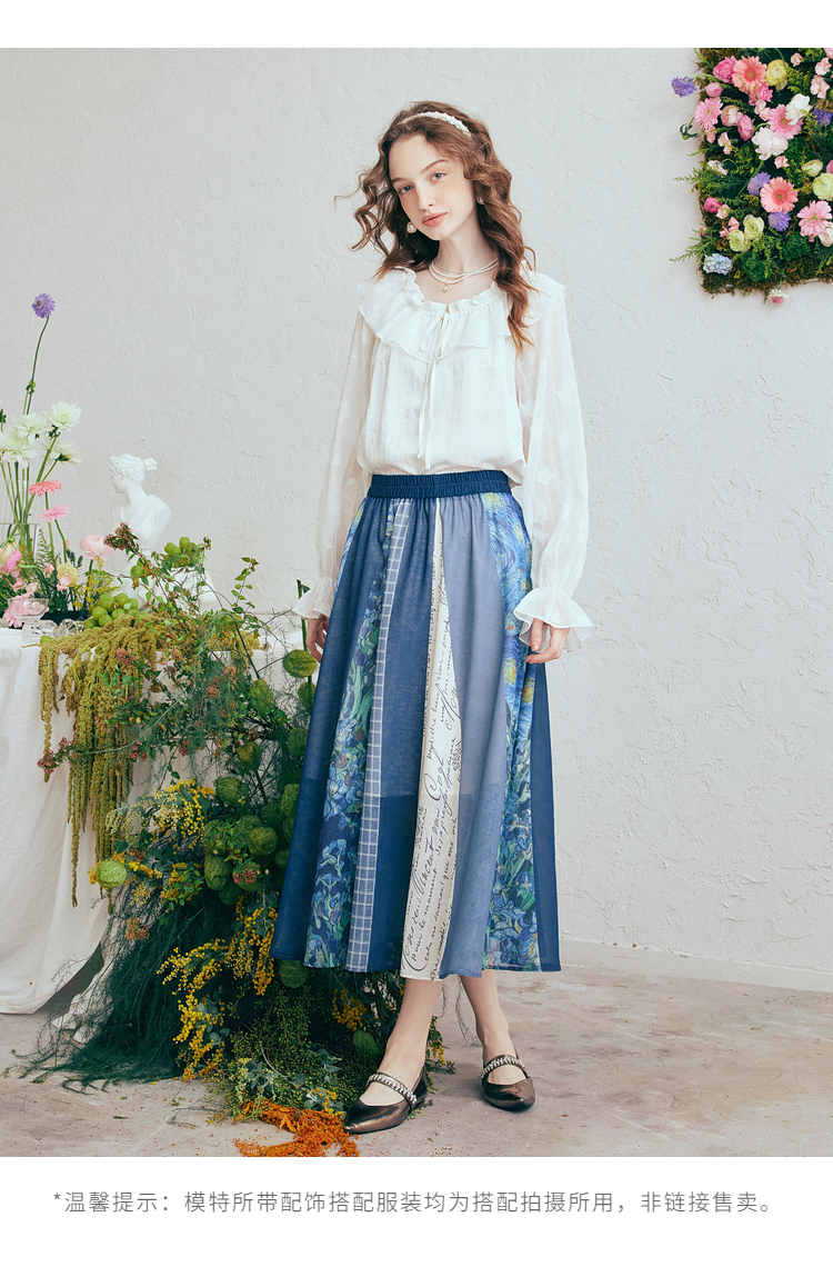 两三事 蜜夏神谕 2025春季新款文艺风蝴蝶结大翻领印花衬衫女宽松
