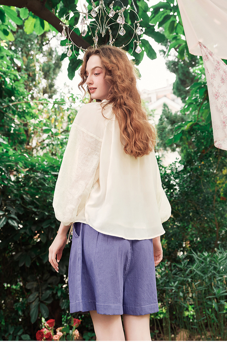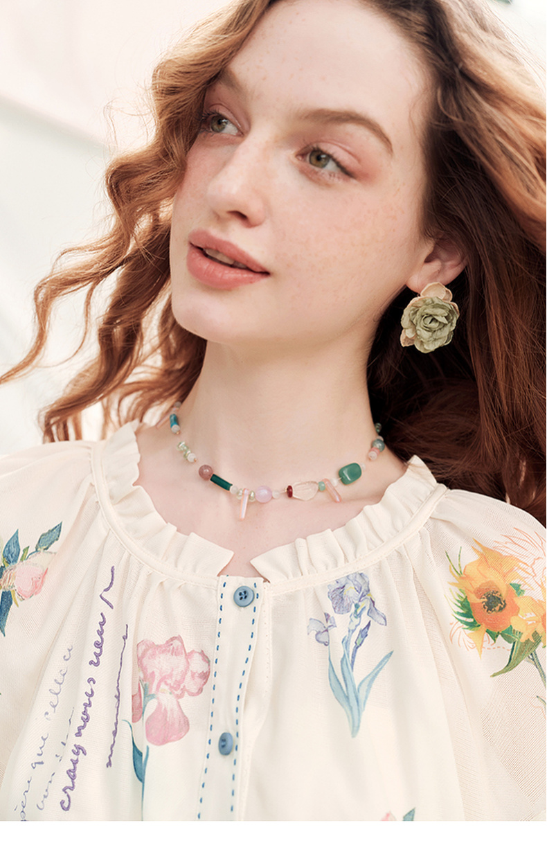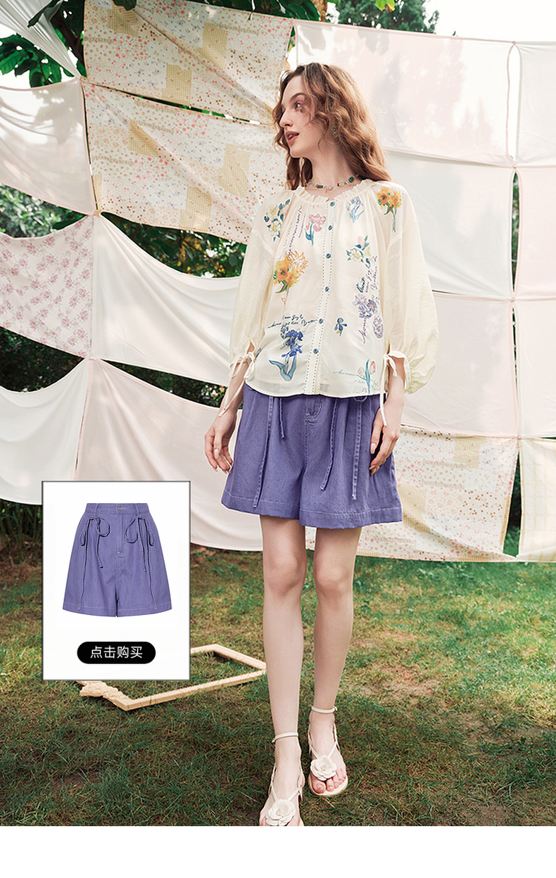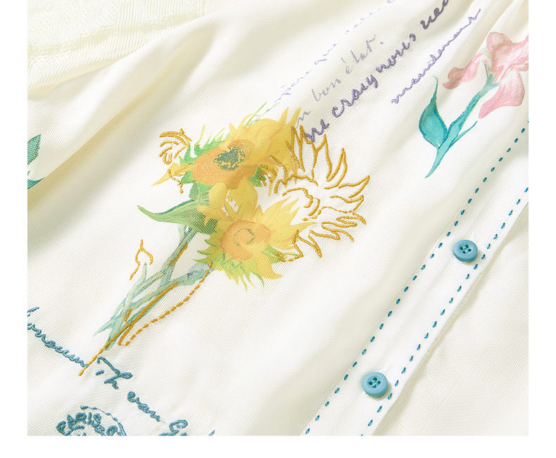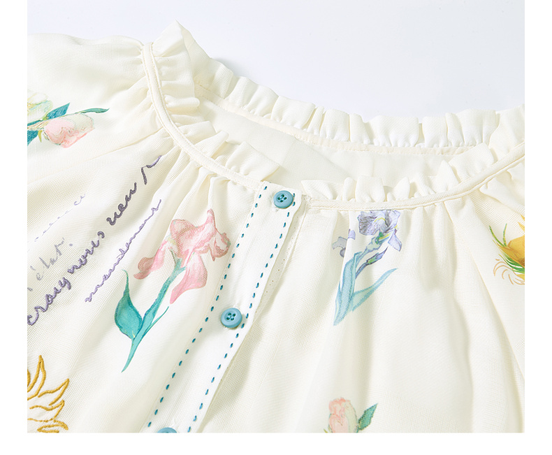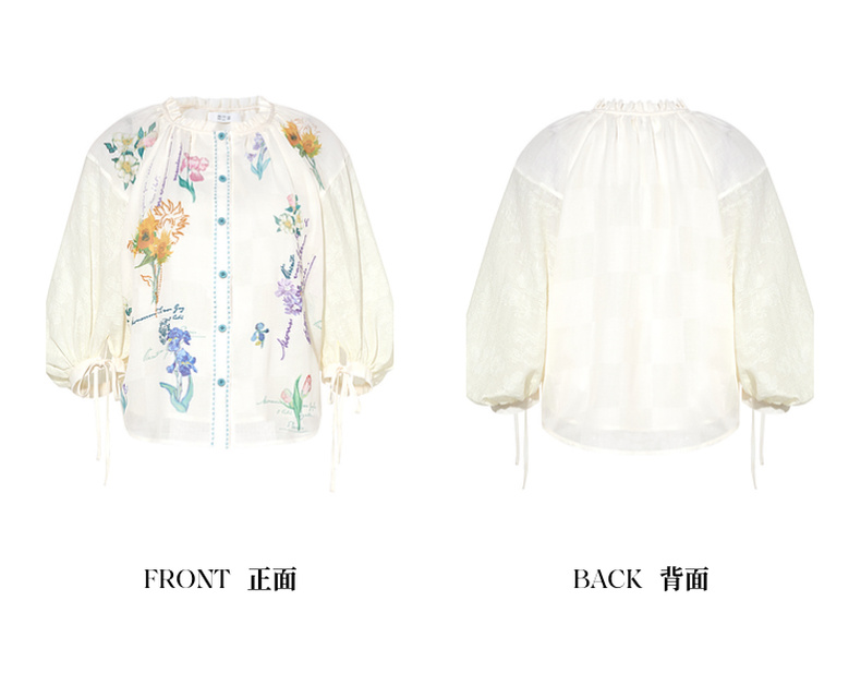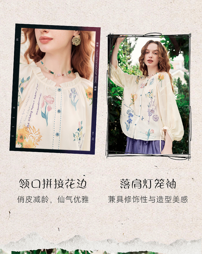 两三事梵高文艺写生花集2024夏季新款印花绑带灯笼袖衬衫女宽松