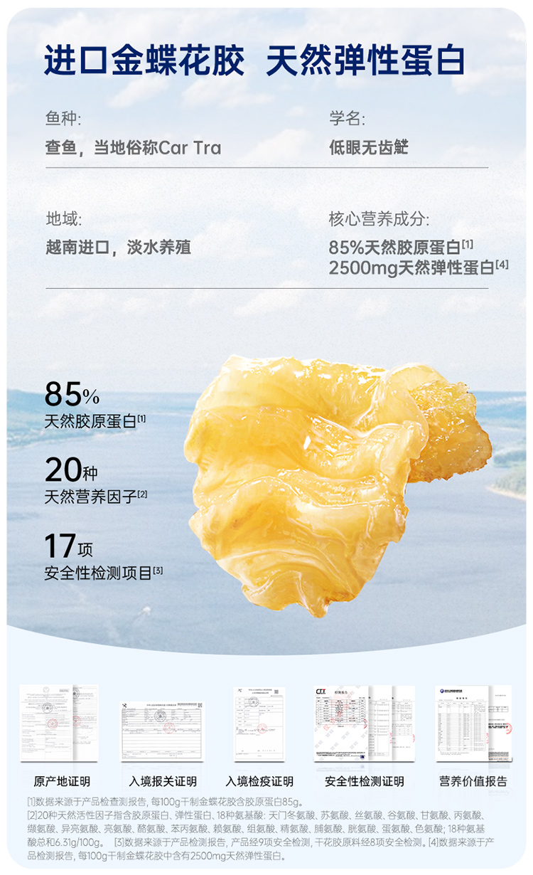 【限时特惠】官栈金蝶胶原花胶-6瓶装(63g/瓶) 商品图5