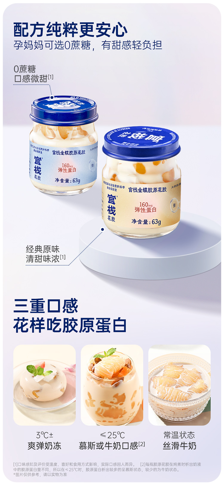 【限时特惠】官栈金蝶胶原花胶-6瓶装(63g/瓶) 商品图3