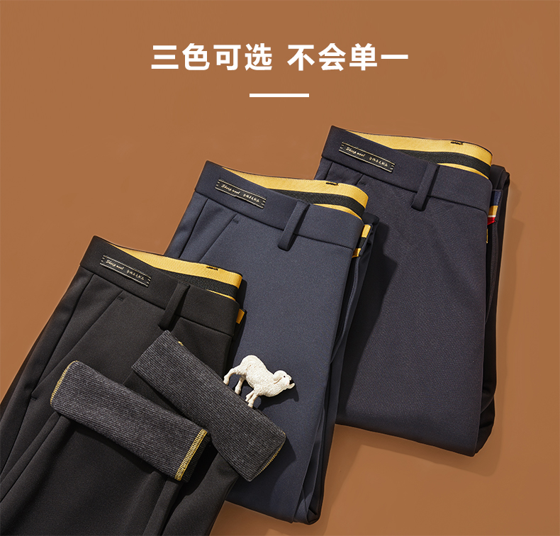 【含绵羊毛 加绒保暖】罗蒙秋冬男士休闲西裤舒适直筒显瘦加绒保暖商务通勤男裤子