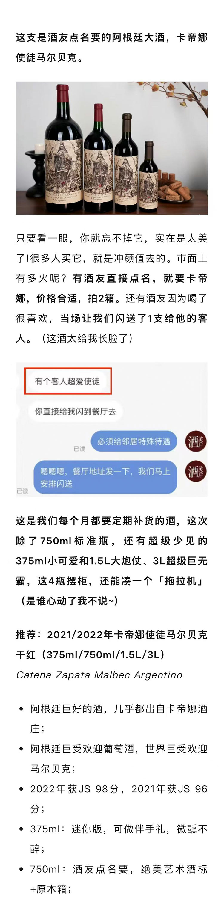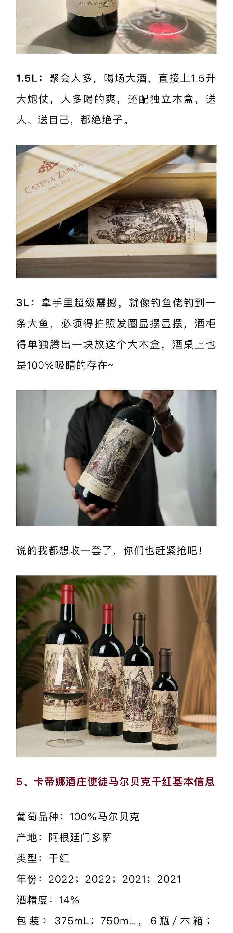 2021/2022年阿根廷一哥卡帝娜使徒马尔贝克干红艺术标集齐375ml-3L全套送礼收藏