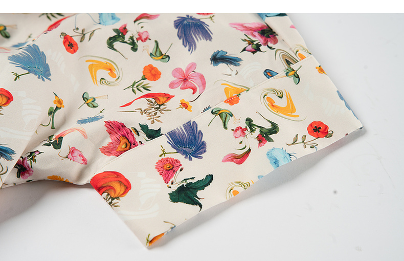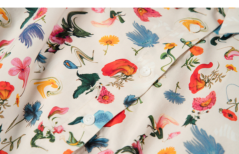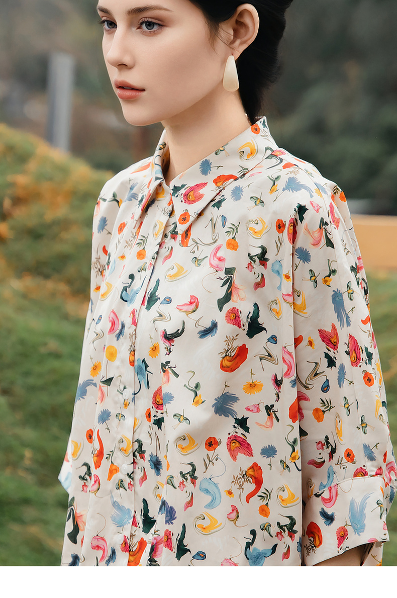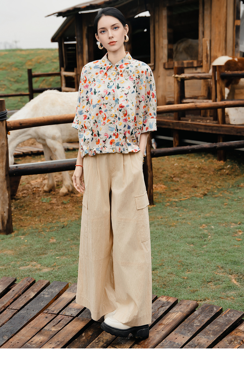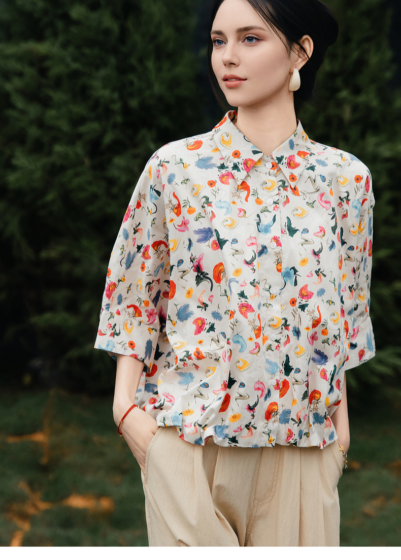 谜底花色衬衫分袖女2025夏新款复古宽松下摆可收缩衬衣256MC6202