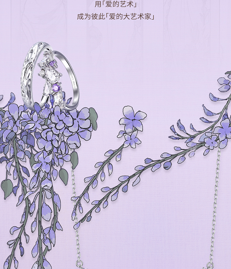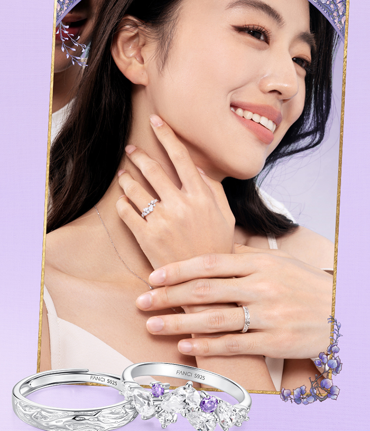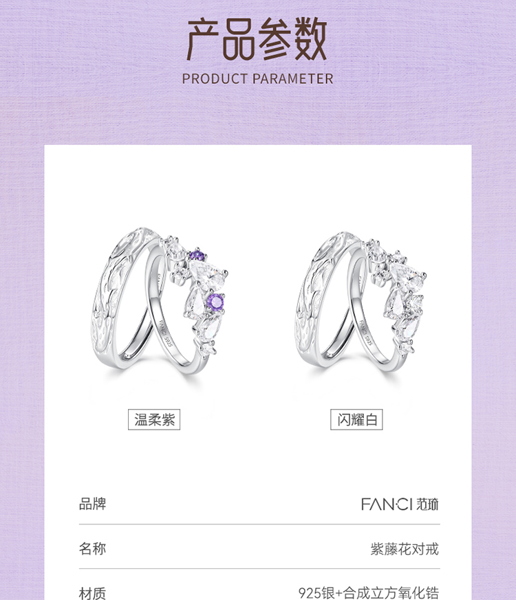 Fanci范琦 紫藤花系列紫藤花情侣对戒 纪念日生日礼物送女友