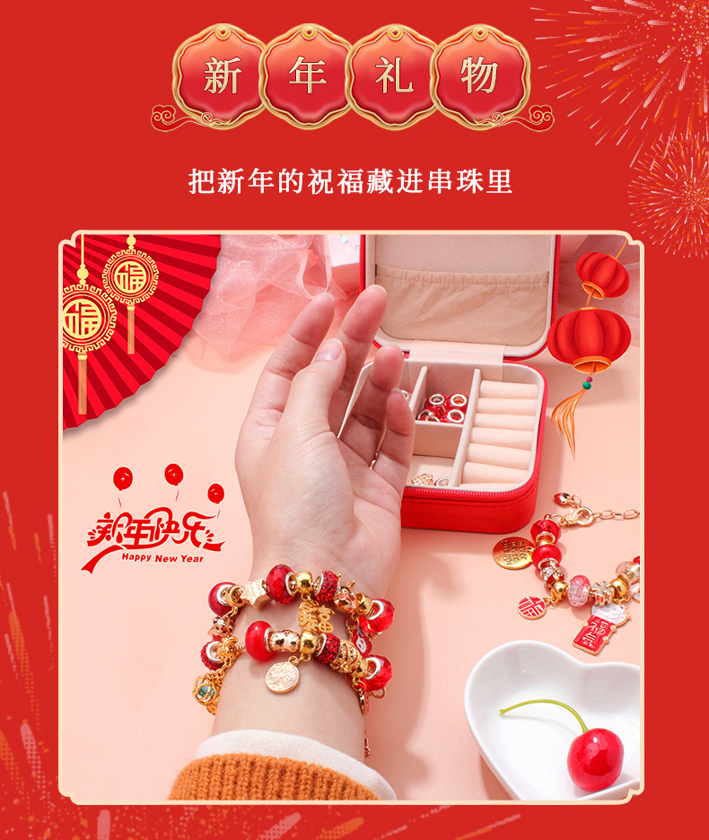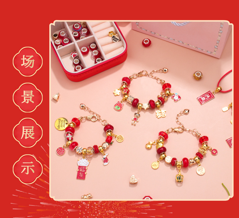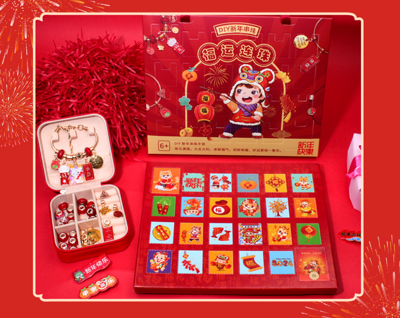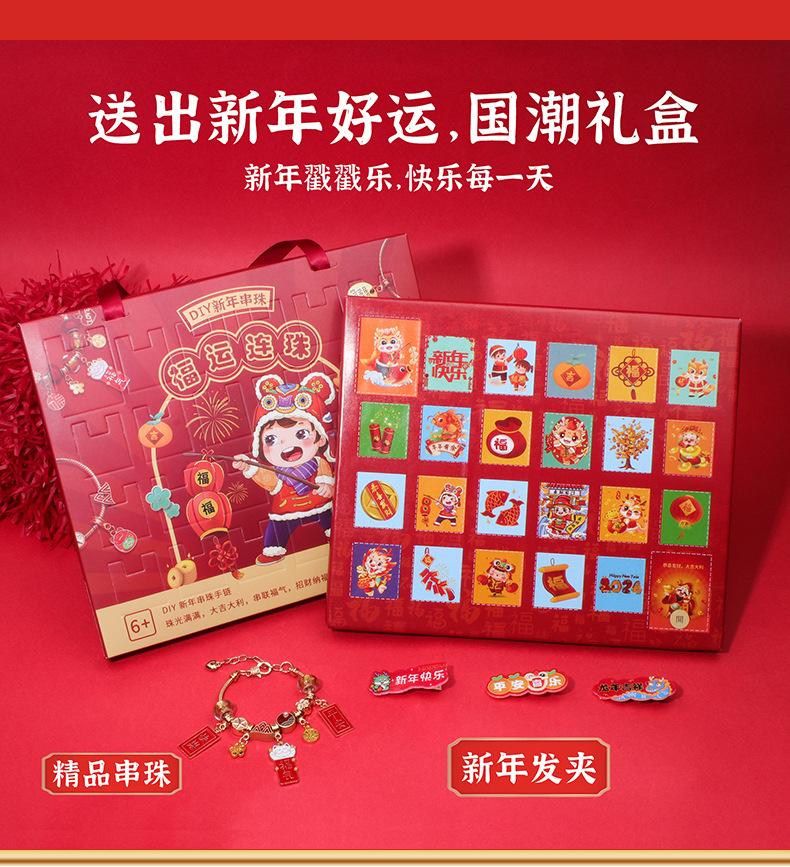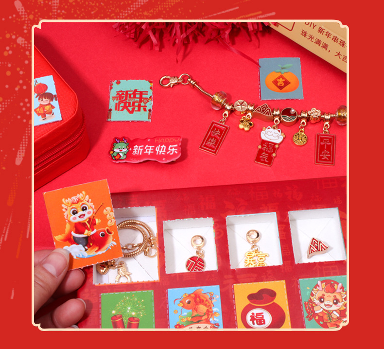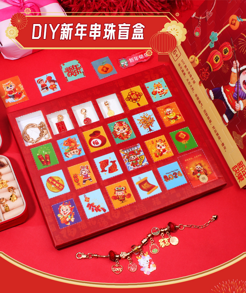 【送出新年好运,国潮礼盒!】龙年洞洞乐戳戳乐diy饰品,节日礼物龙年盲盒手链盲盒送孩儿童,亲自动手制作自己的手链,培养他们的动手能力和创造力!