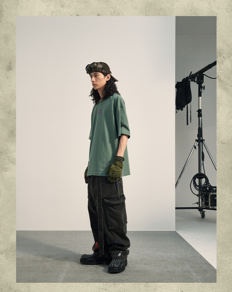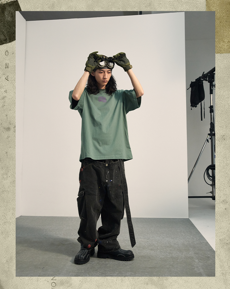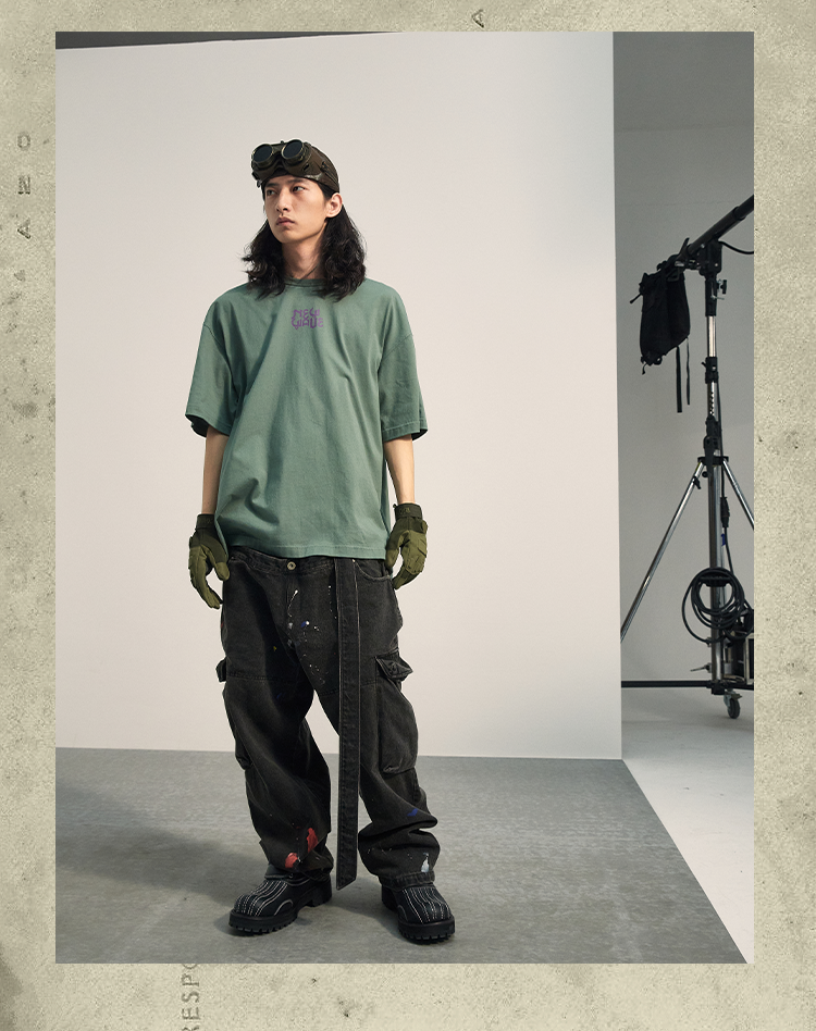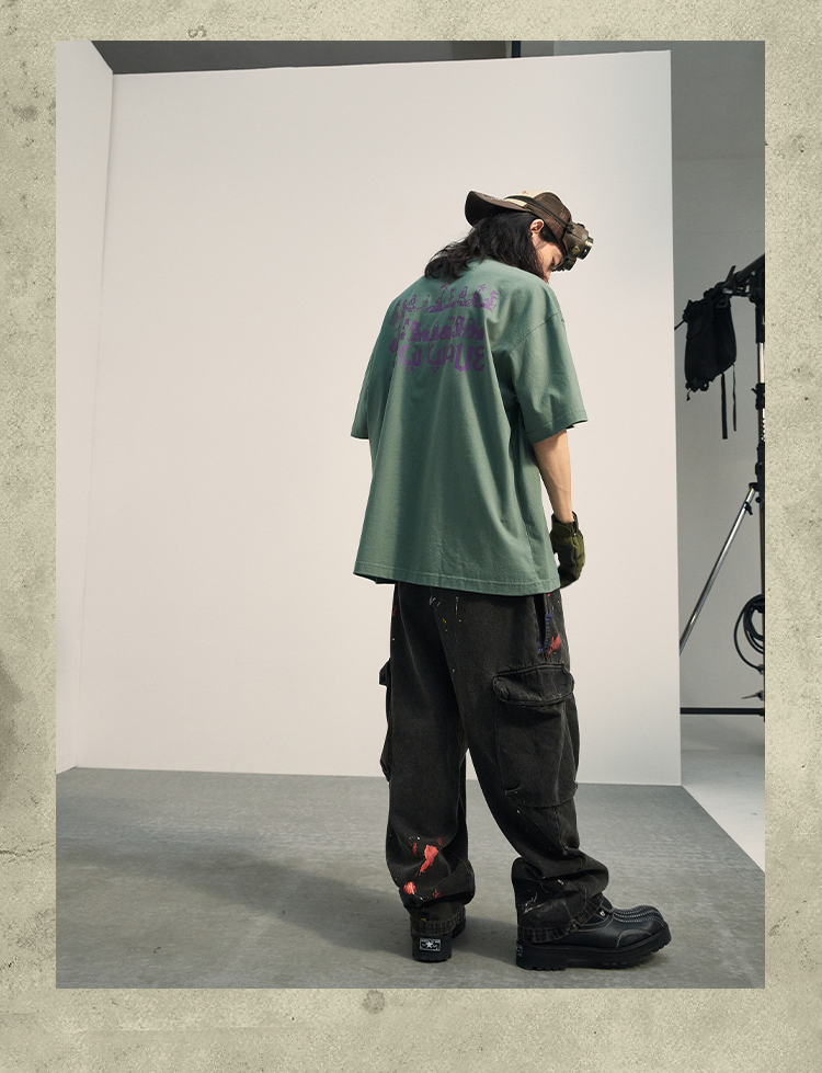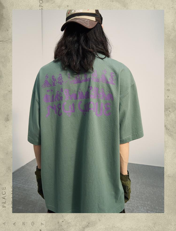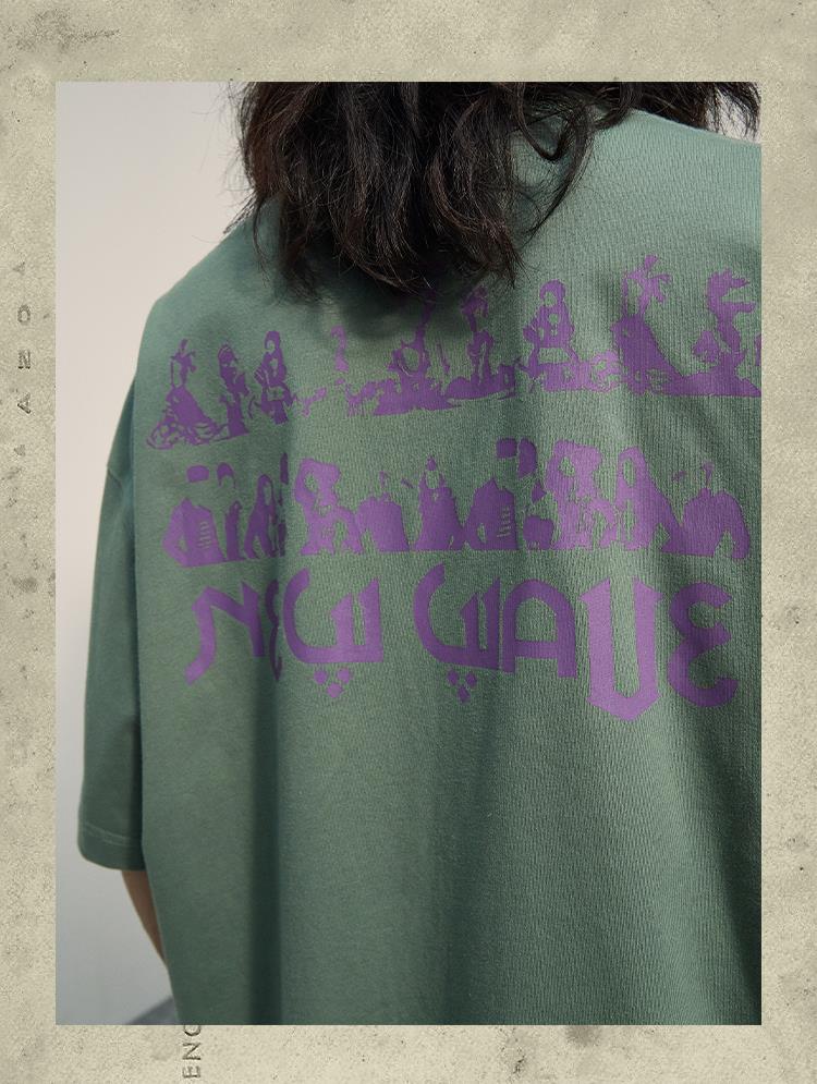 POH「新浪潮」 人像剪贴画圆领复古短袖T恤男潮流街头宽松上衣Tee