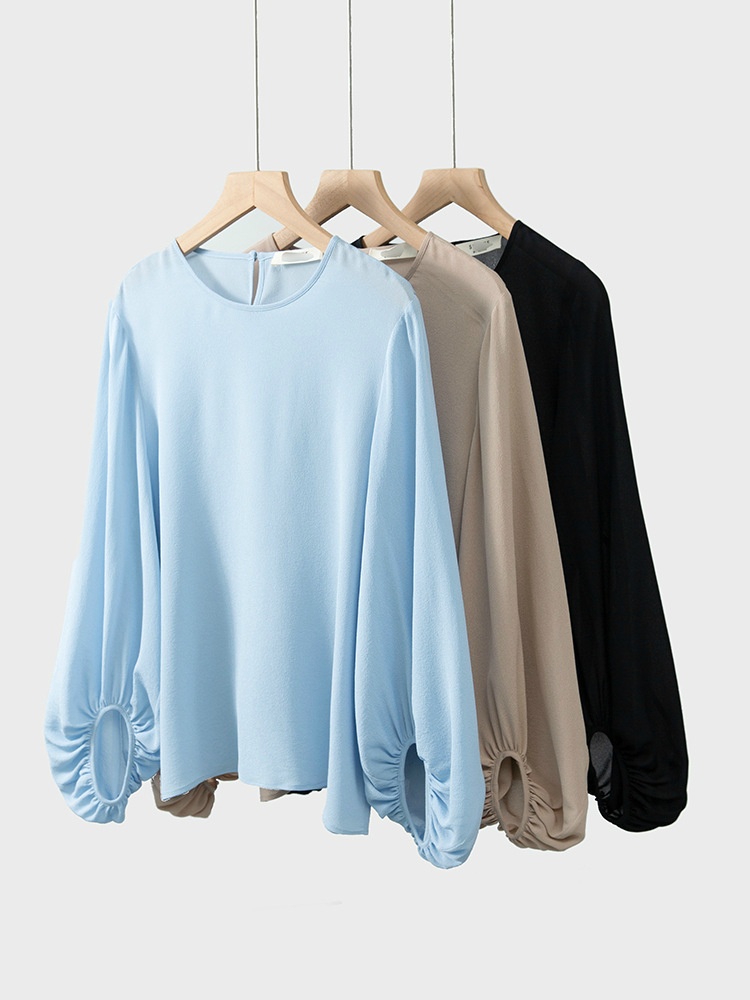 鬼绉真丝圆领长袖宽松套头衫