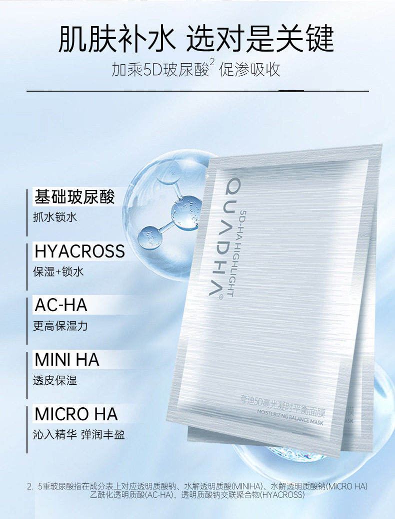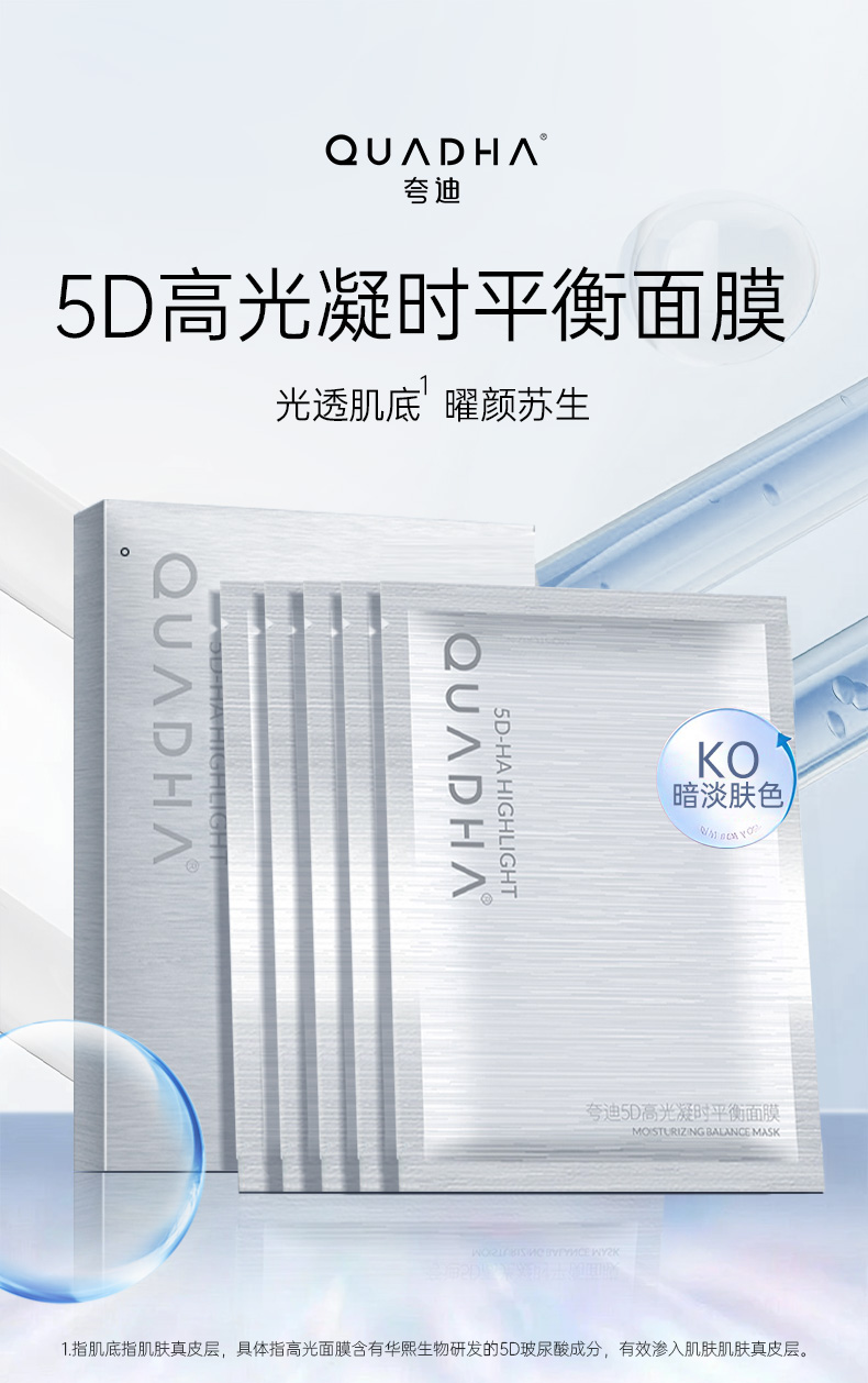 【清仓好价】夸迪高光面膜5D玻尿酸凝时平衡5片/盒*2盒(效期至25年)