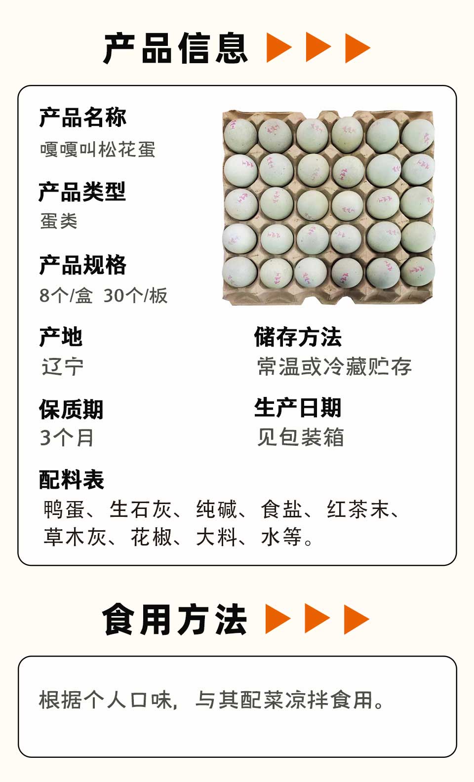 【会员专享】嘎嘎叫松花蛋(中码) 8个/盒 30个/板 6板/件