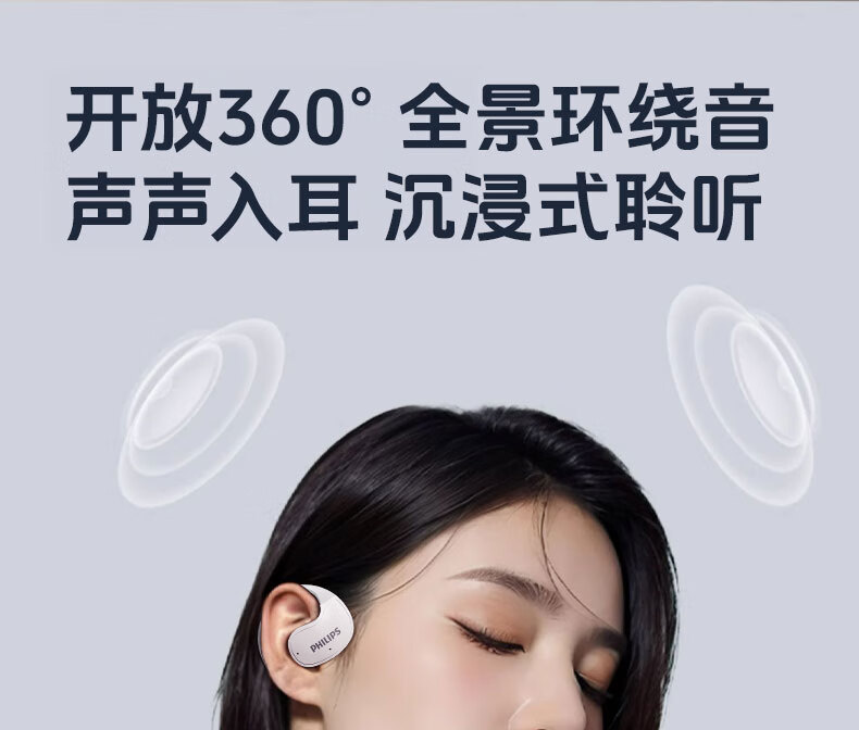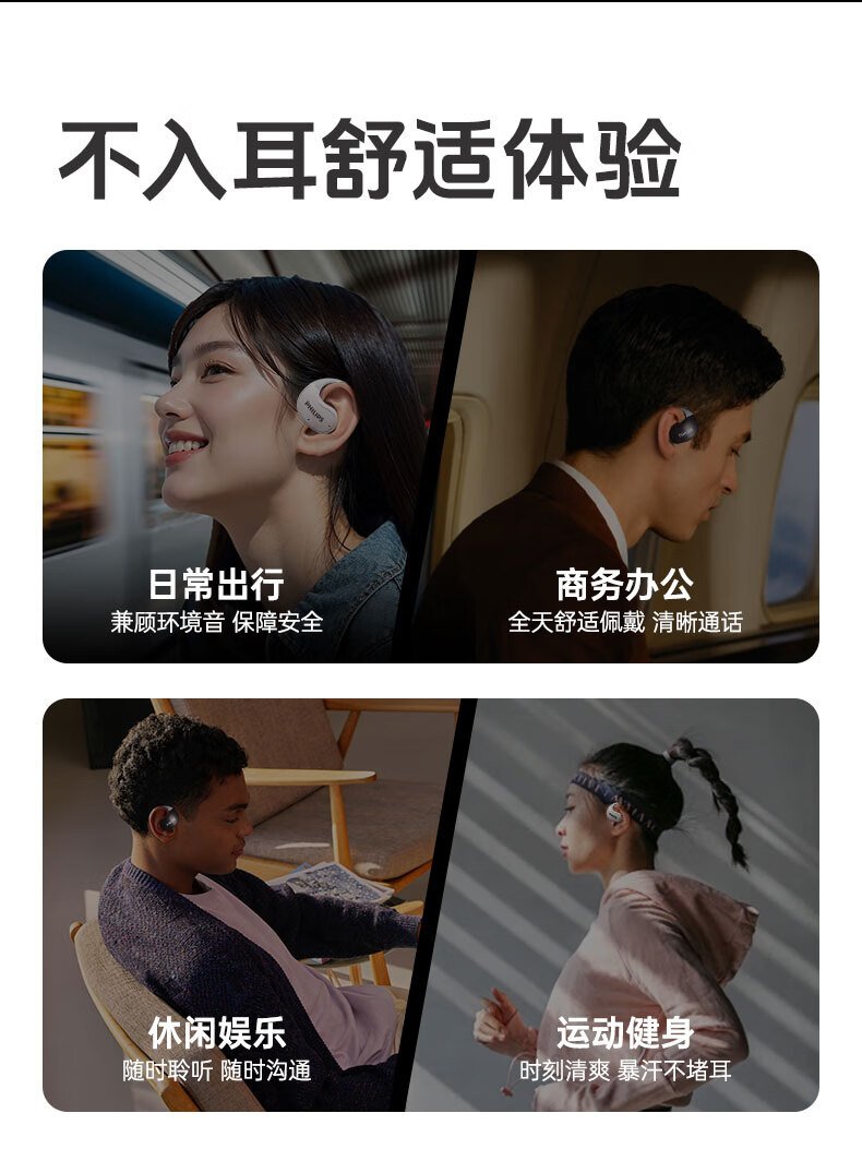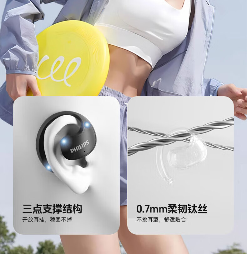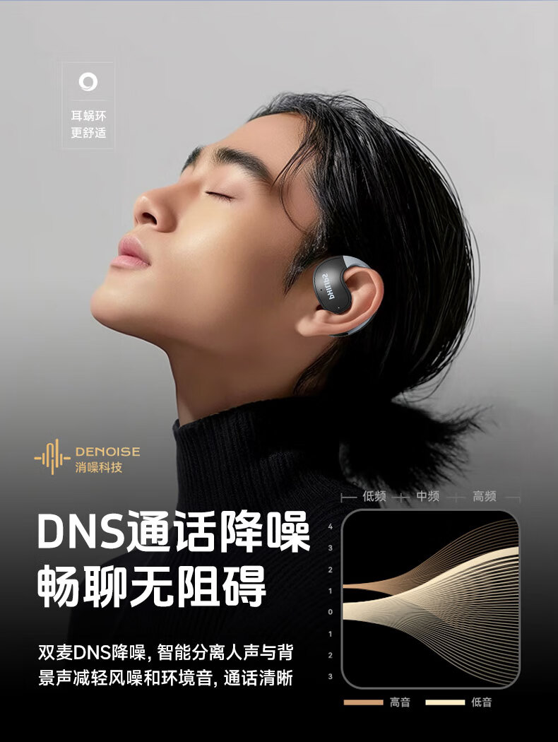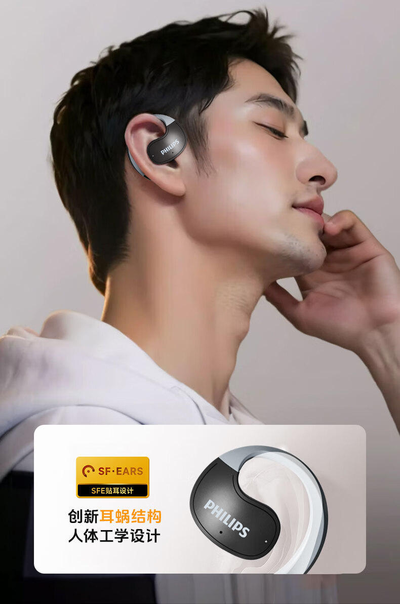 飞利浦(PHILIPS)蓝牙耳机骨传导概念真无线挂耳式开放式不入耳夹式运动跑步长续航高端降噪通用苹果华为TAT2708