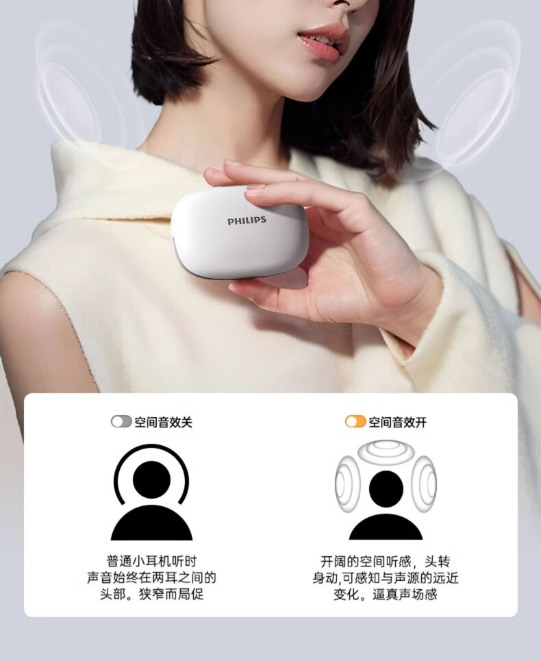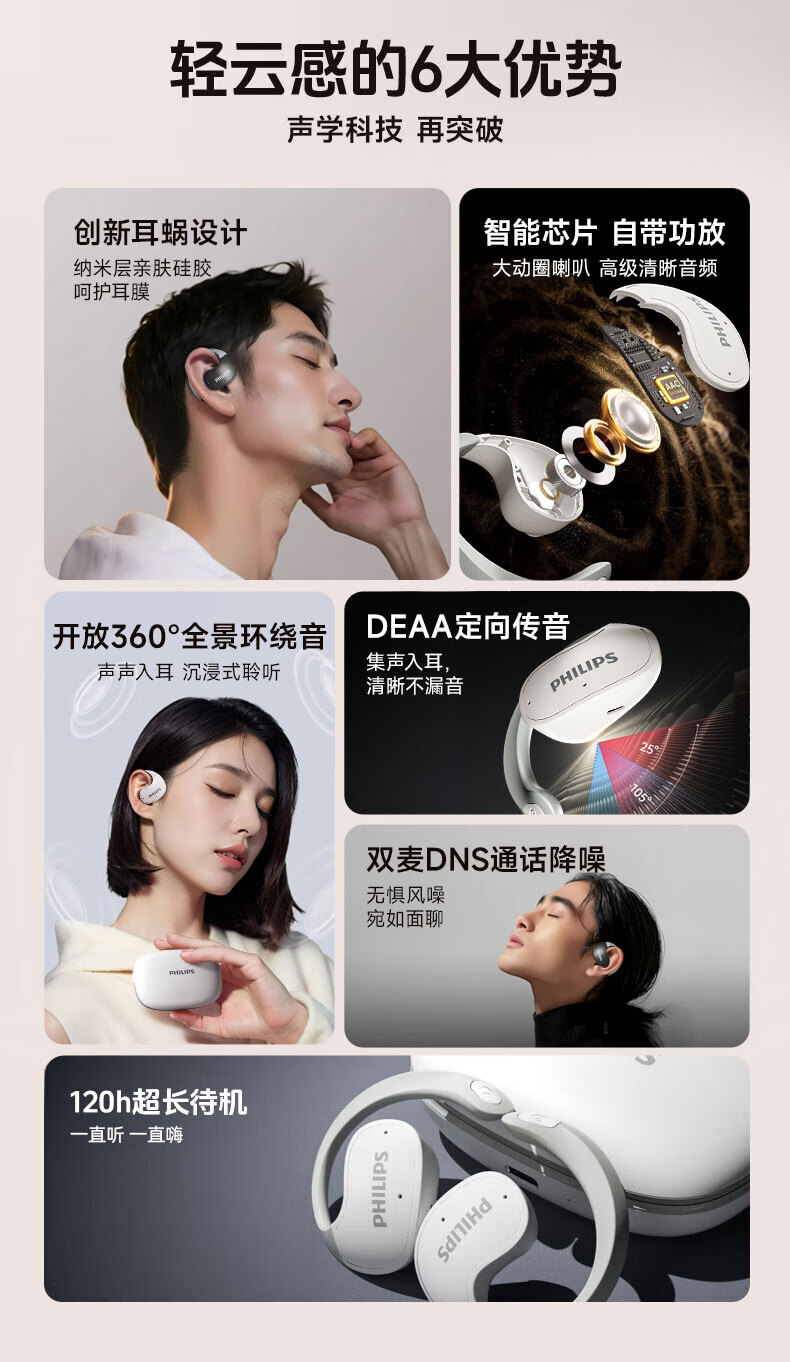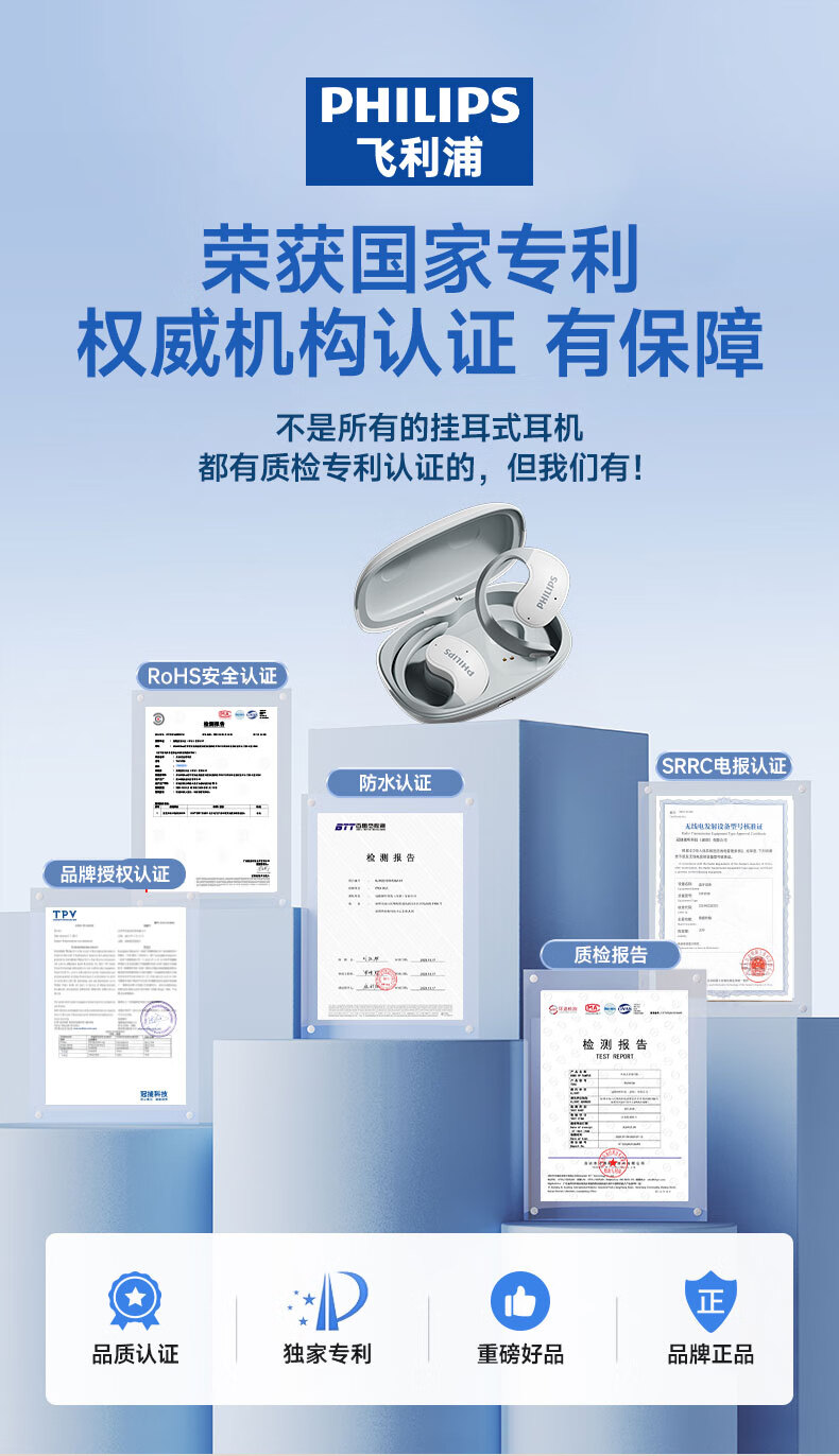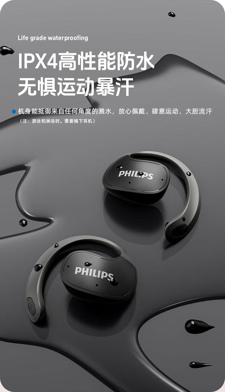 飞利浦(PHILIPS)蓝牙耳机骨传导概念真无线挂耳式开放式不入耳夹式运动跑步长续航高端降噪通用苹果华为TAT2708