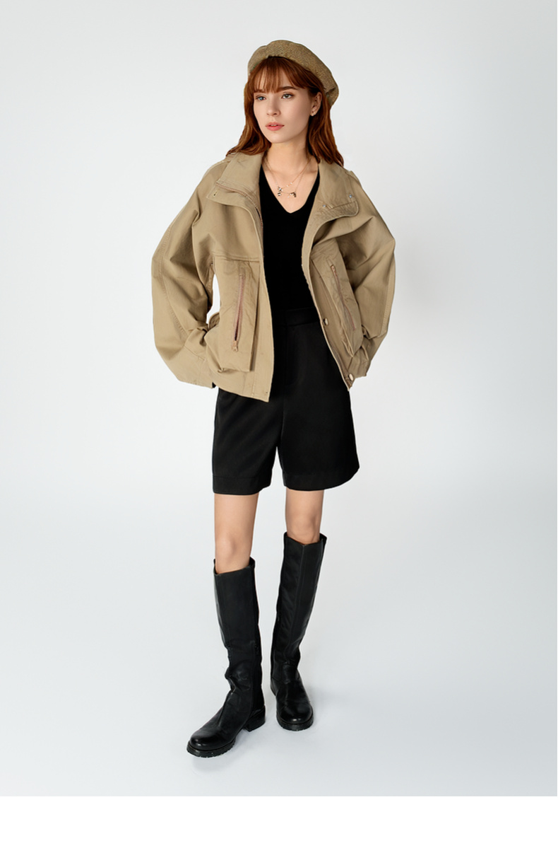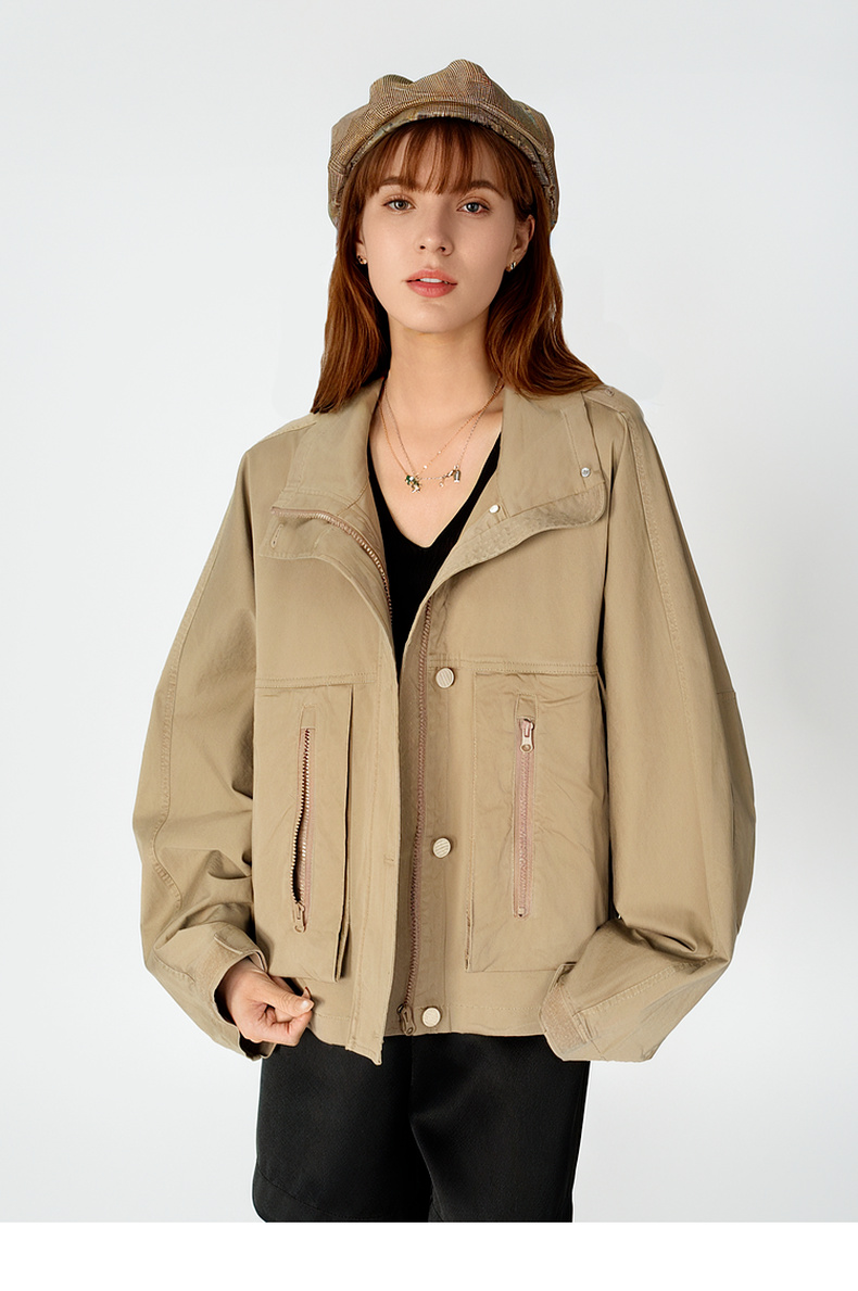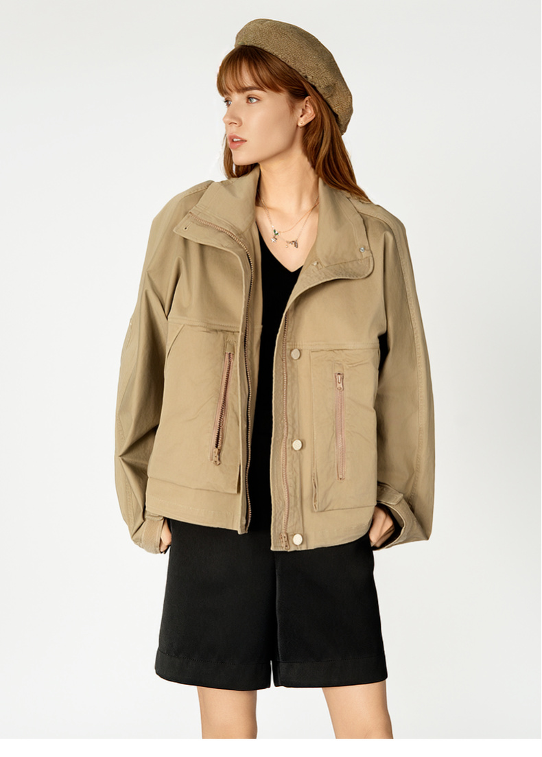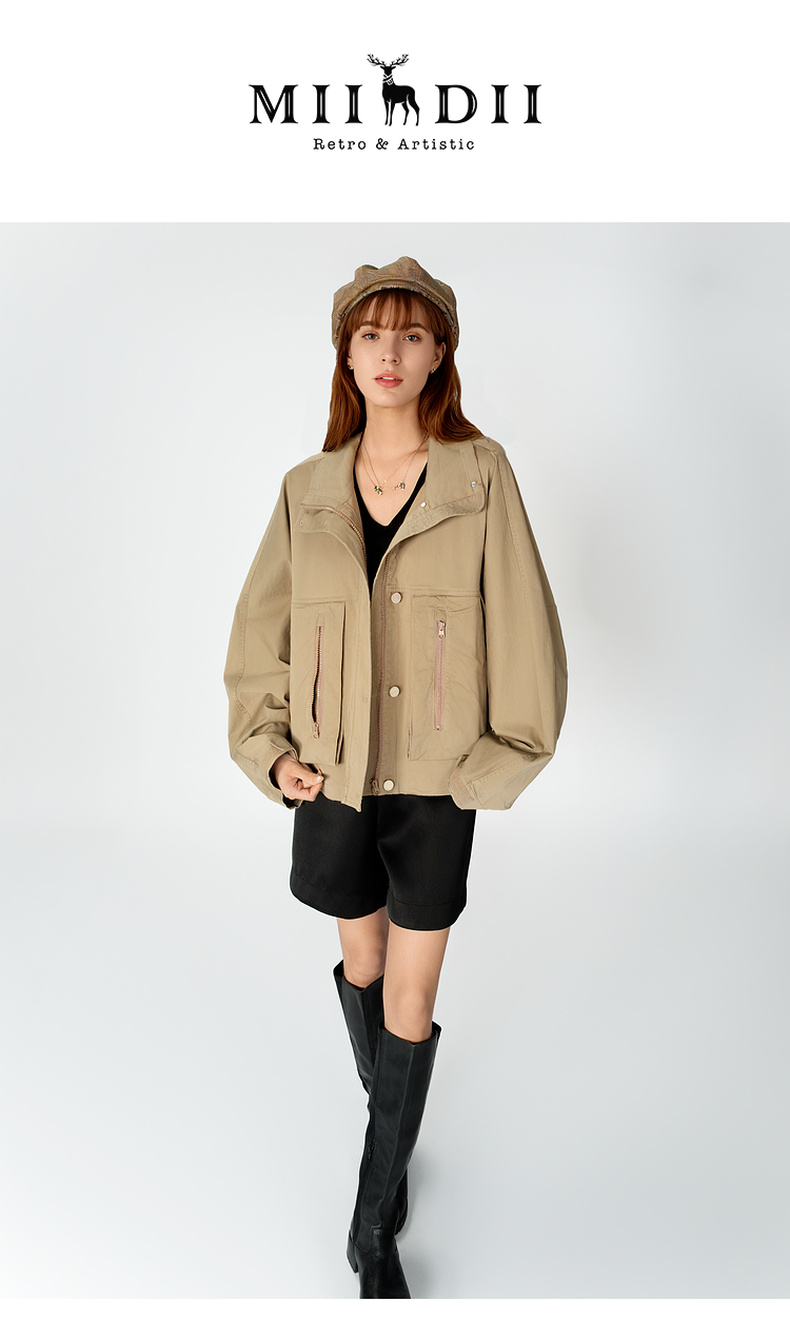 谜底短款外套女2025春新品设计感率性百搭宽松夹克长袖251MW5001
