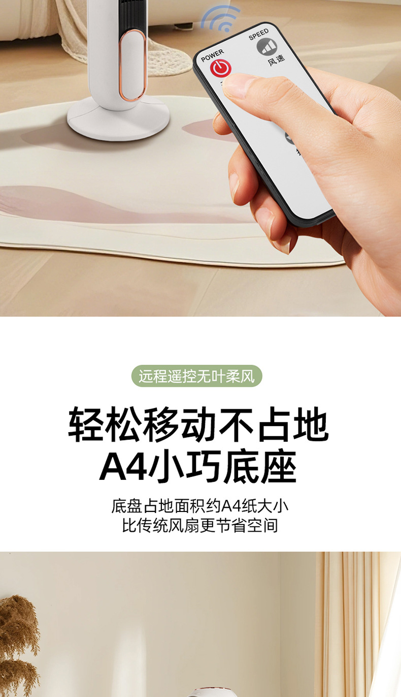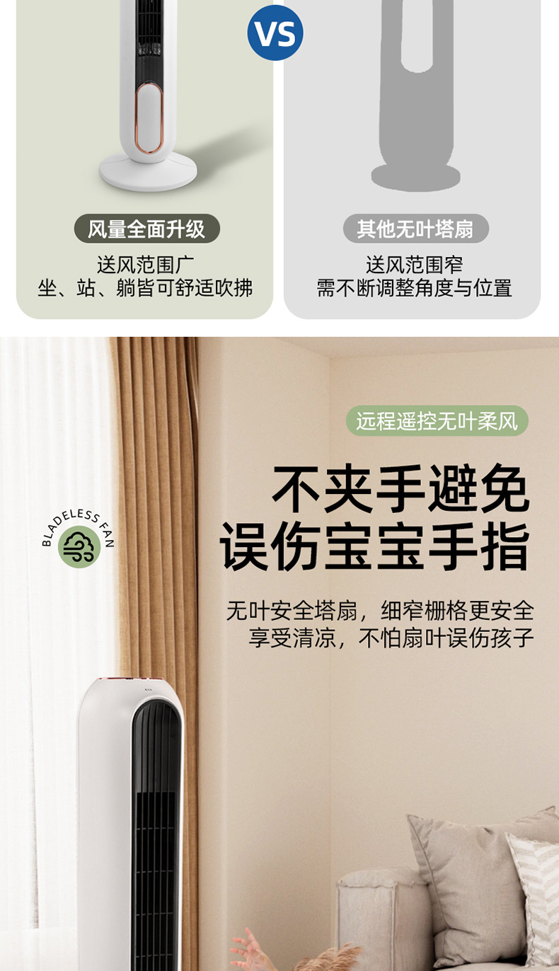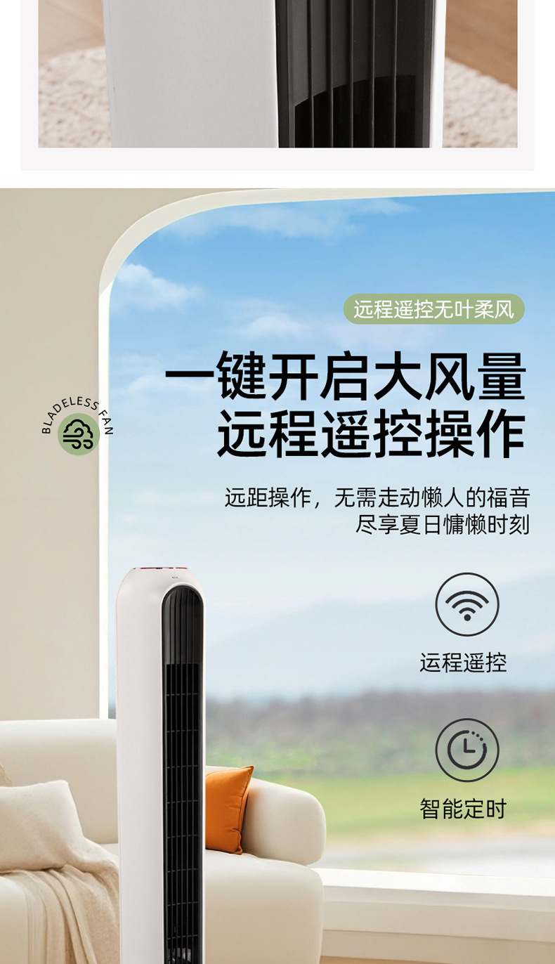 【新款塔扇无叶风扇】静音预约定时 卧室家用制冷神器 远程遥控落地扇
