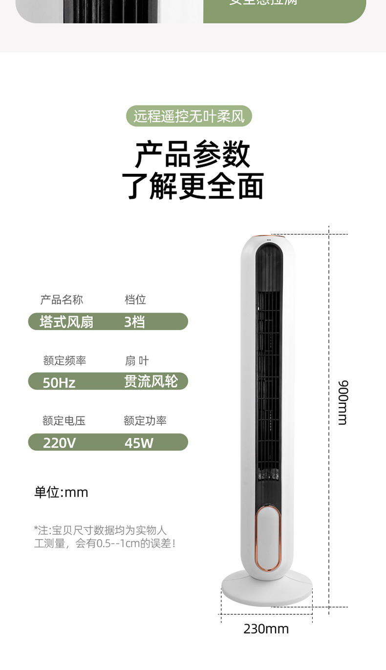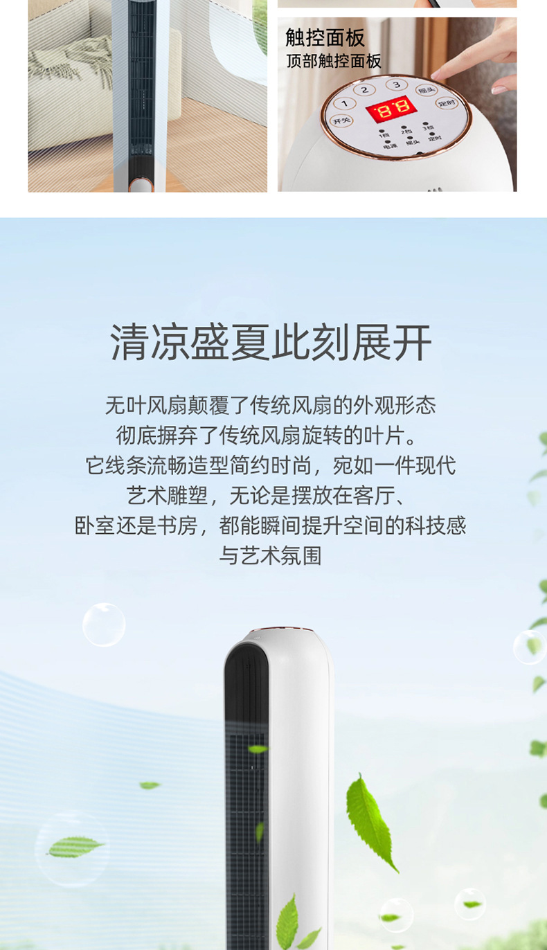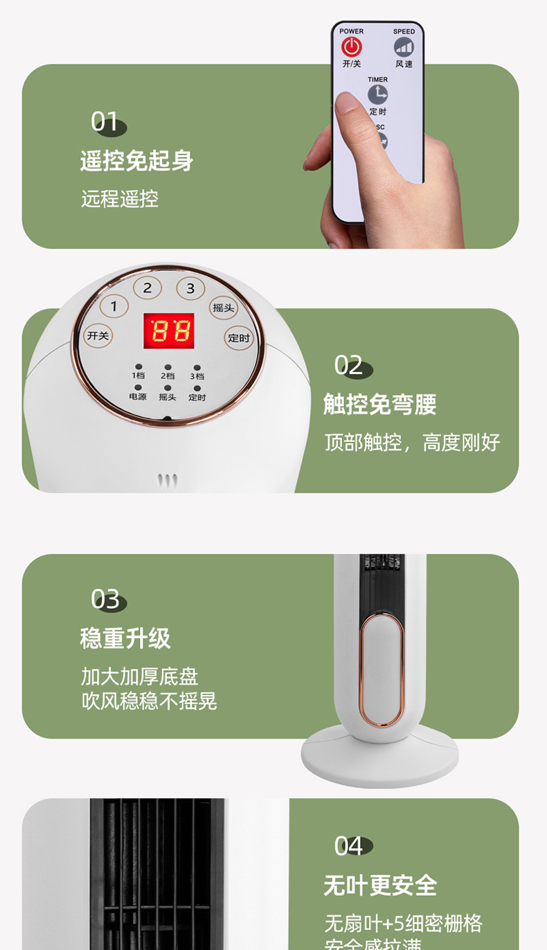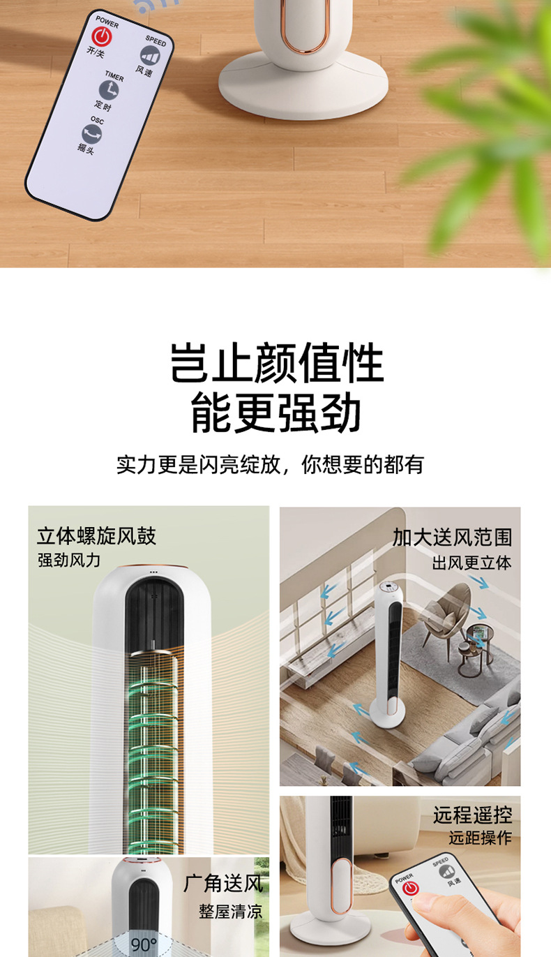 【新款塔扇无叶风扇】静音预约定时 卧室家用制冷神器 远程遥控落地扇