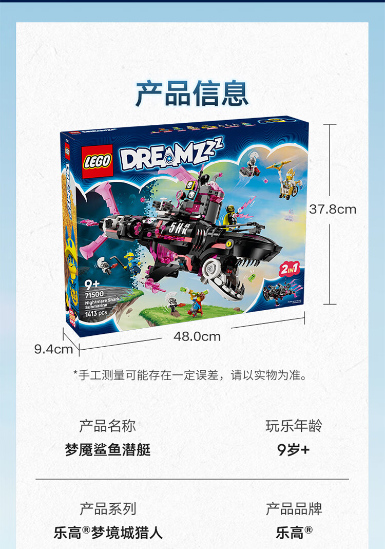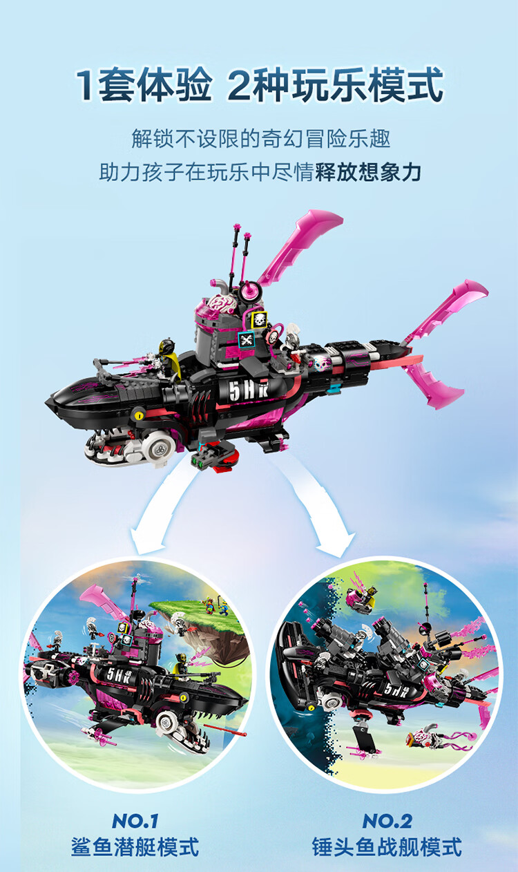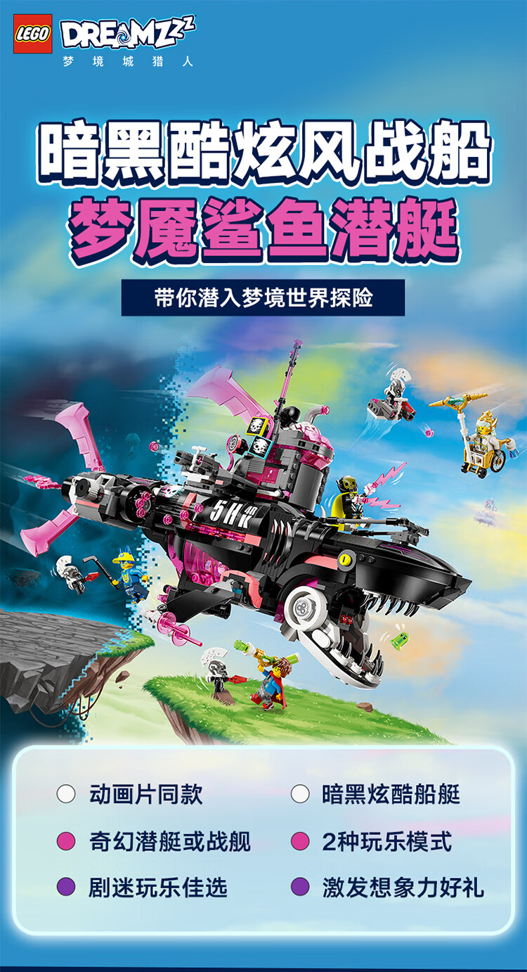 乐高积木L71500乐高梦境城猎人梦魇鲨鱼潜艇