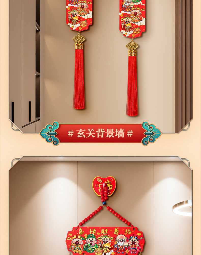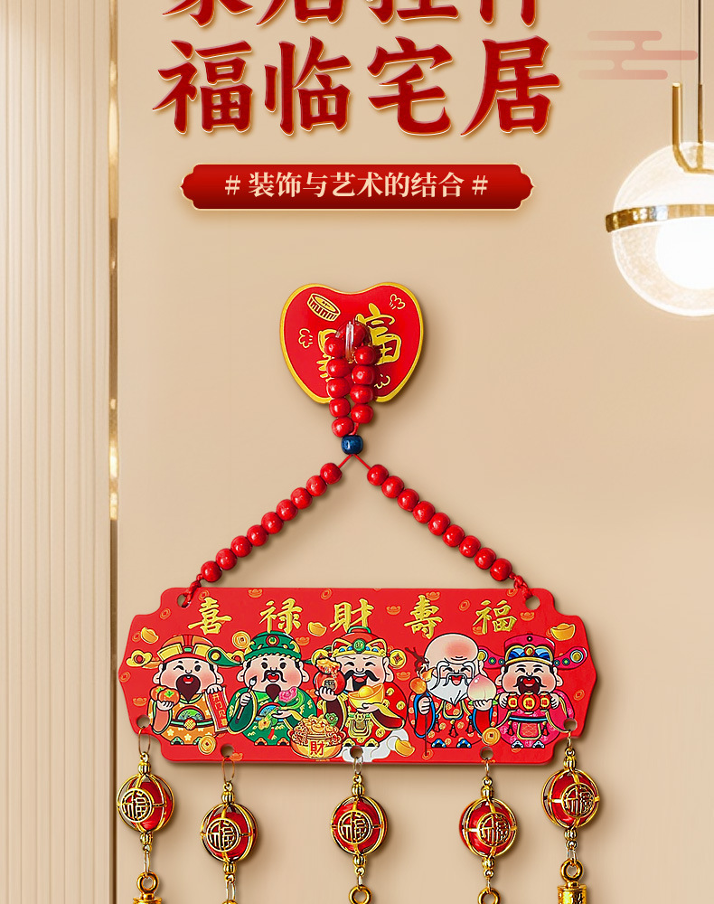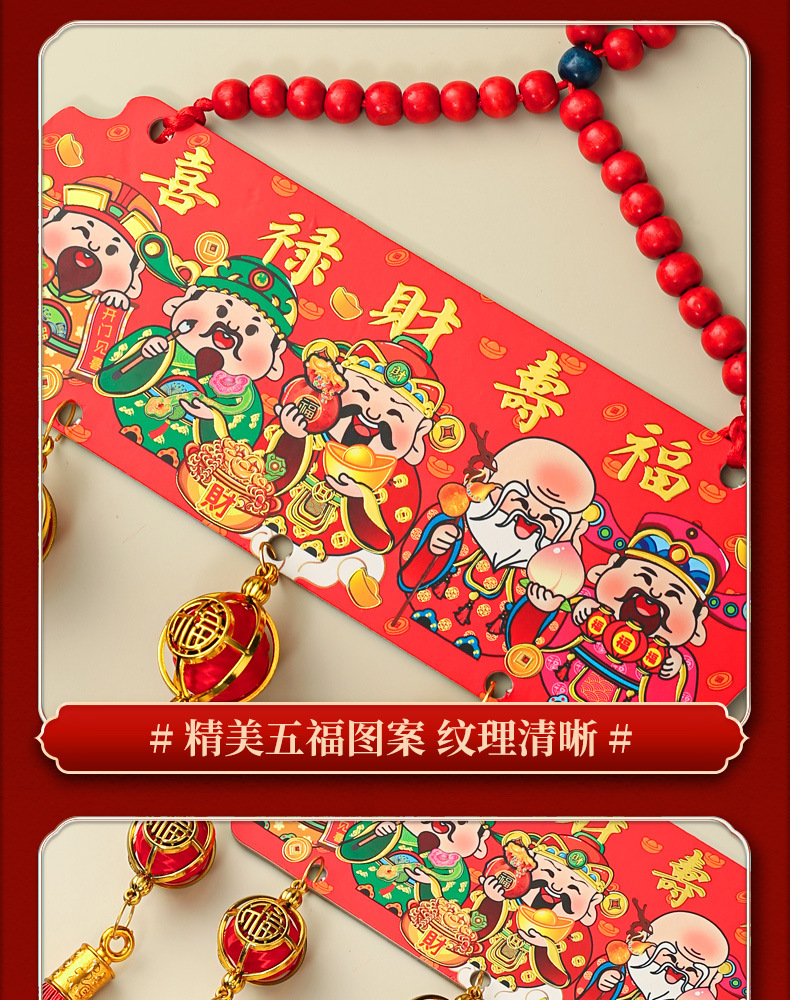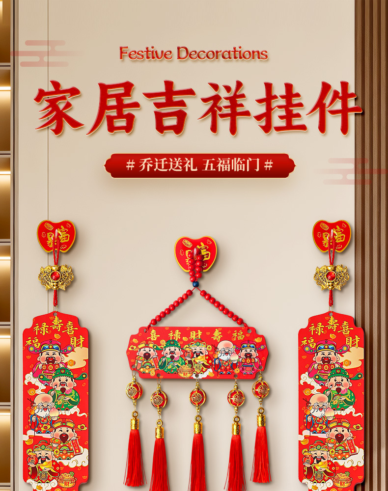 【9.9到手❗️新年五路财神挂件】吉祥如意 喜庆迎福 开门见喜 和气生财 中国风五福桃木浮雕流苏客厅玄关喜庆中国结装饰