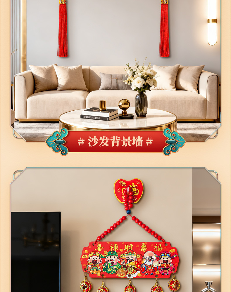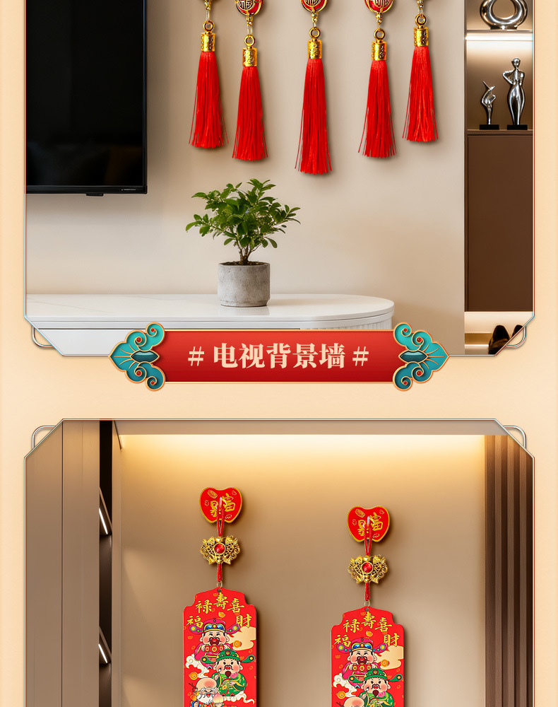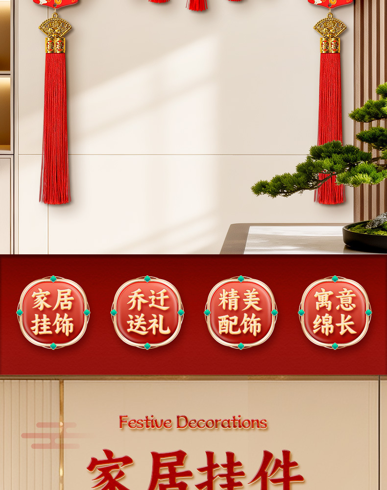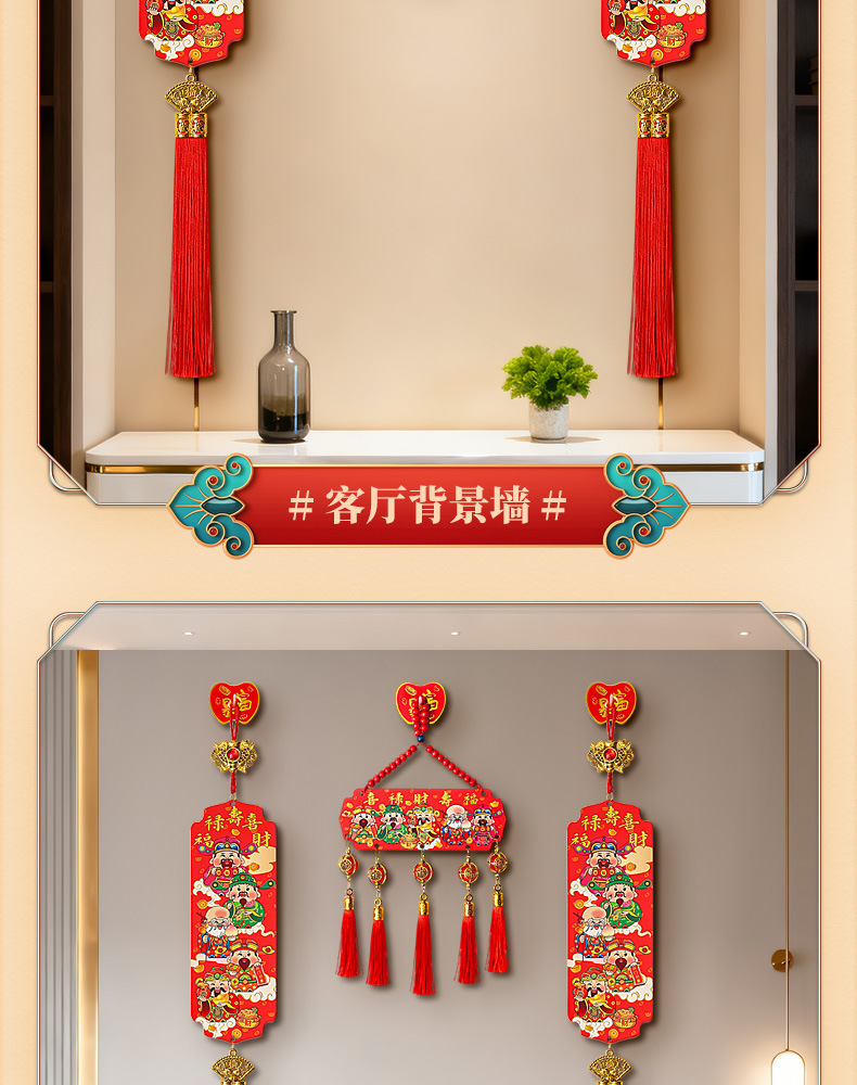 【9.9到手❗️新年五路财神挂件】吉祥如意 喜庆迎福 开门见喜 和气生财 中国风五福桃木浮雕流苏客厅玄关喜庆中国结装饰