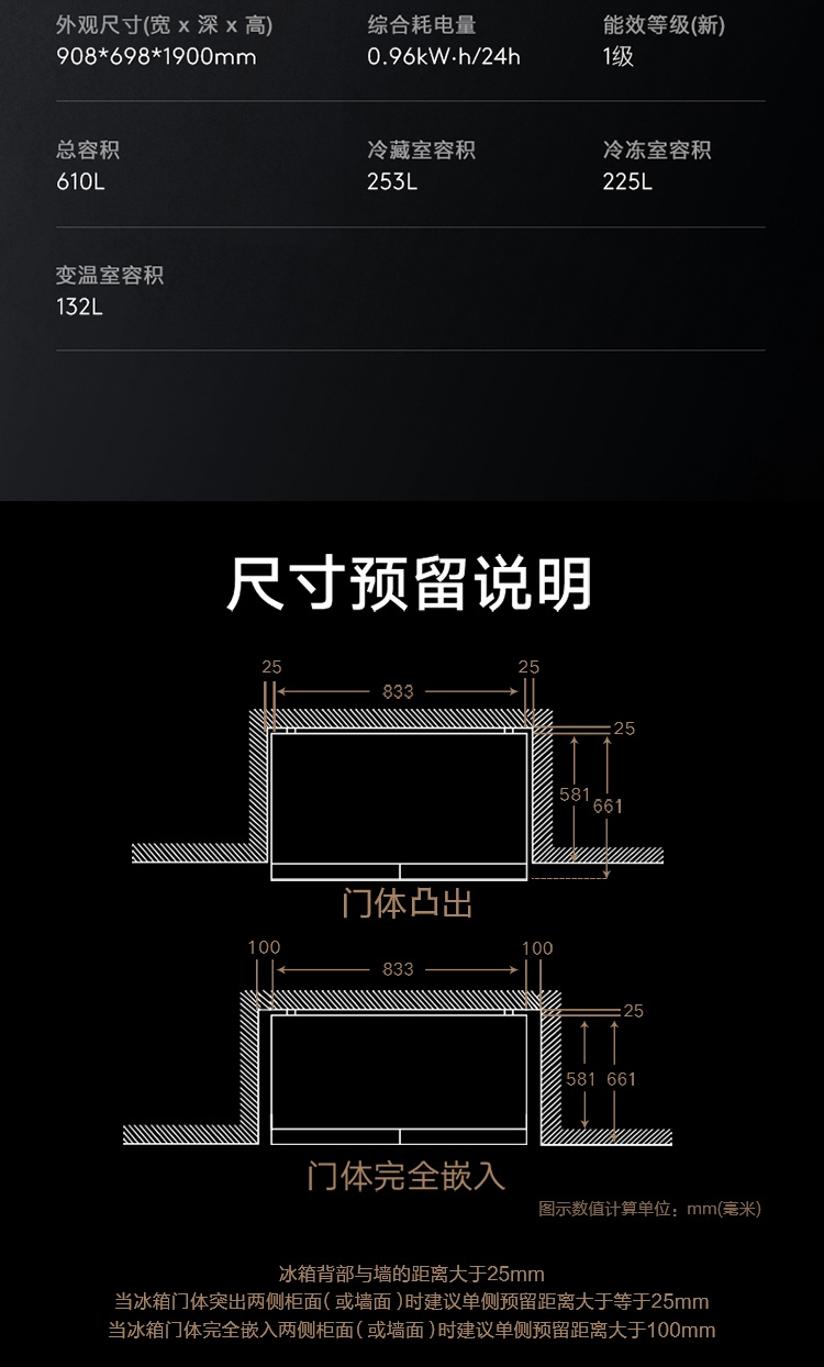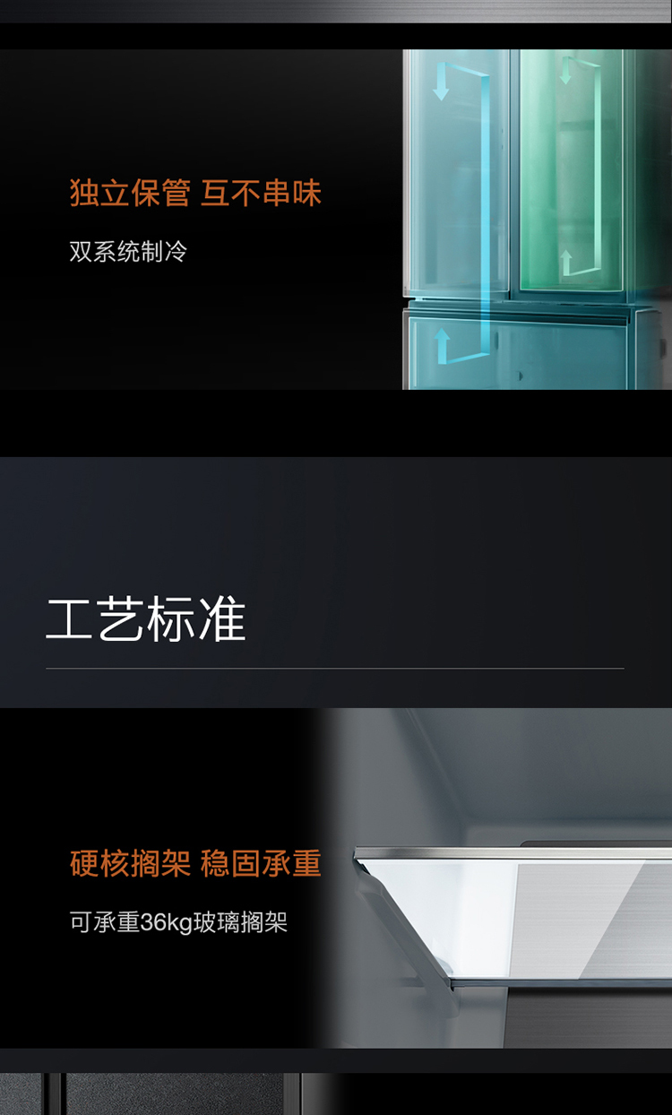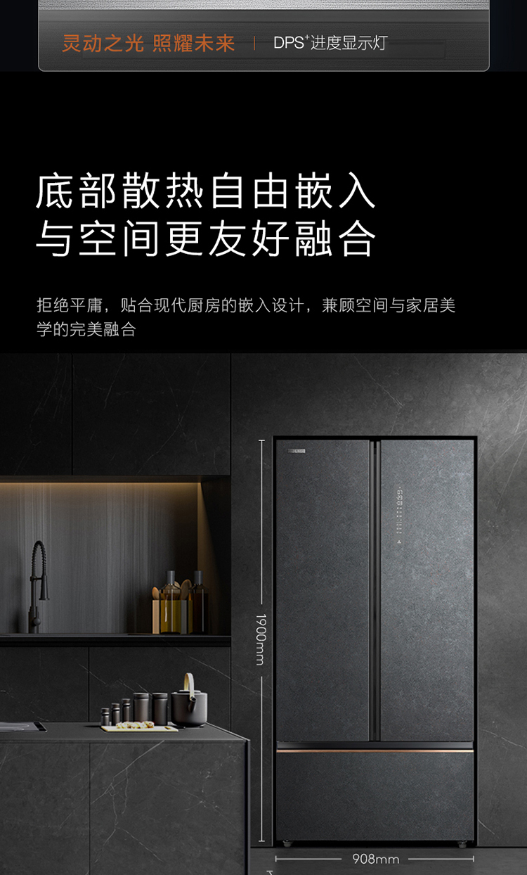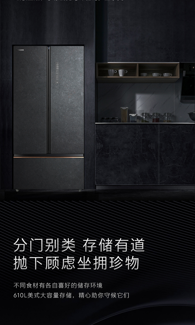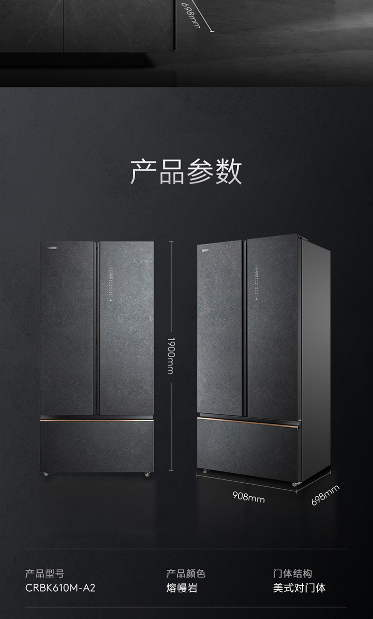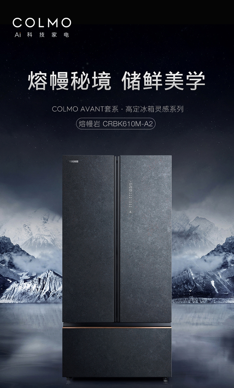 COLMO 冰箱610升美式变频智能超薄自由嵌入风冷高端冰箱 熔幔岩CRBK610M-A2