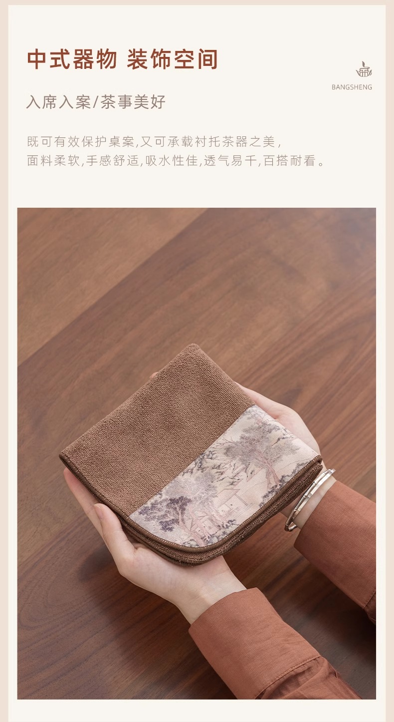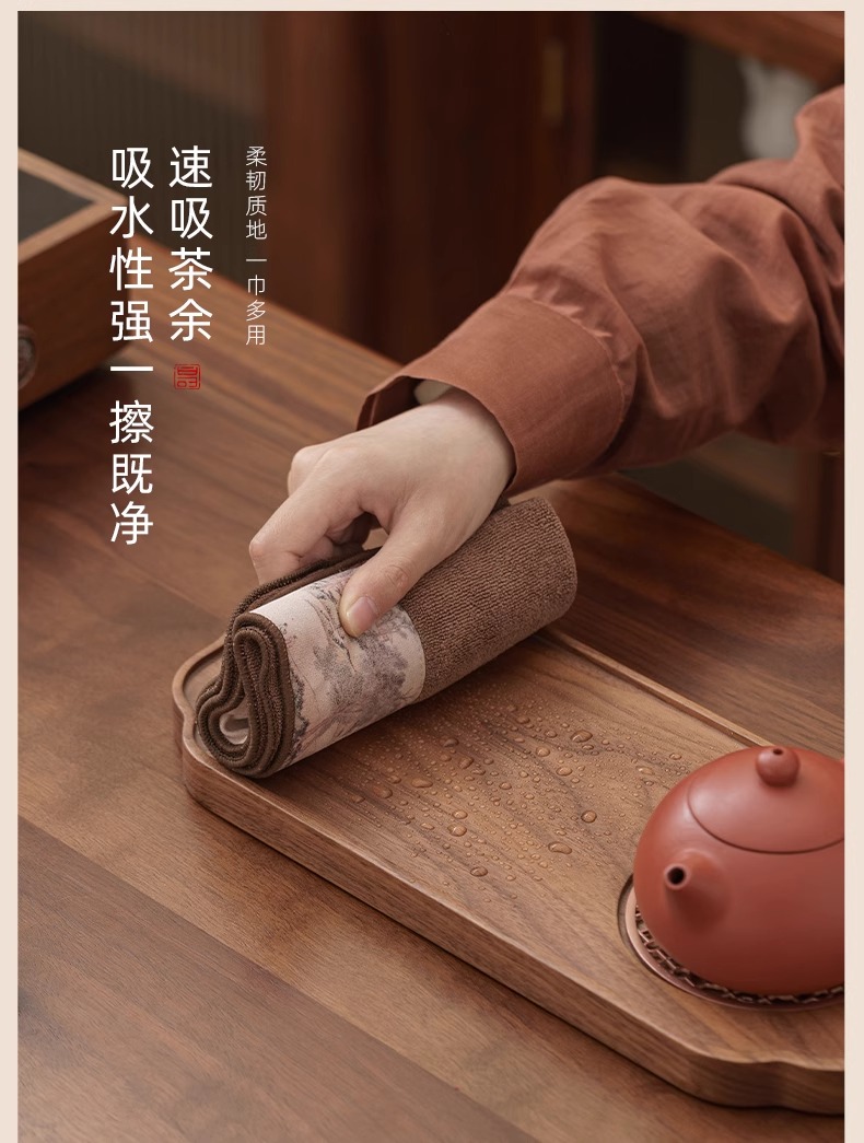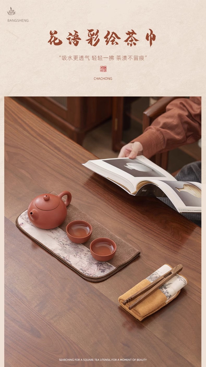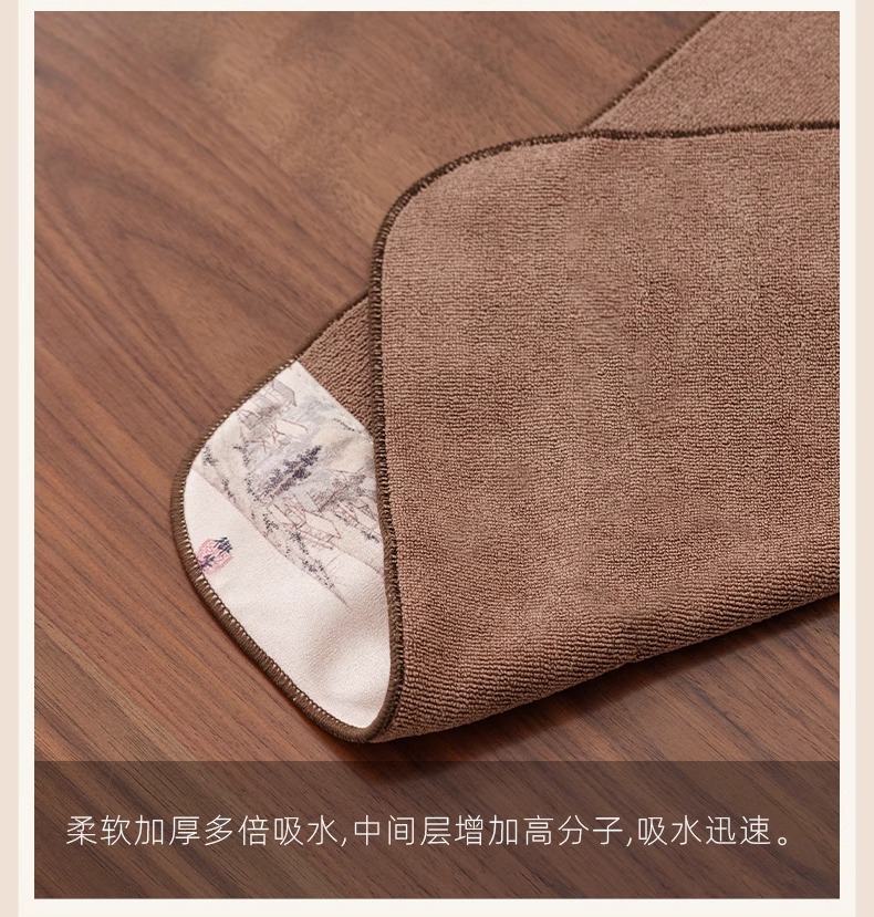 双面两用茶铺茶垫干泡席垫禅意功夫竹席茶几垫家用茶盘垫台隆金藤纹席方如意意竹(20*40cm)花语彩绘茶巾花岛夕阳(30*30cm)