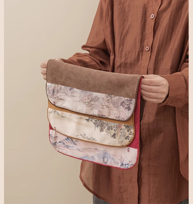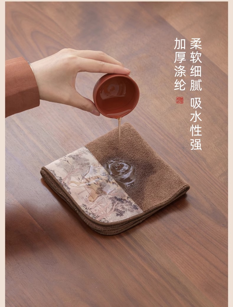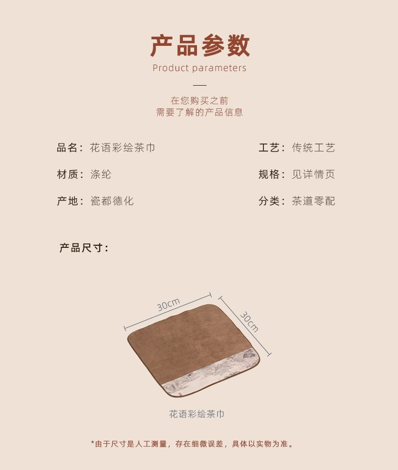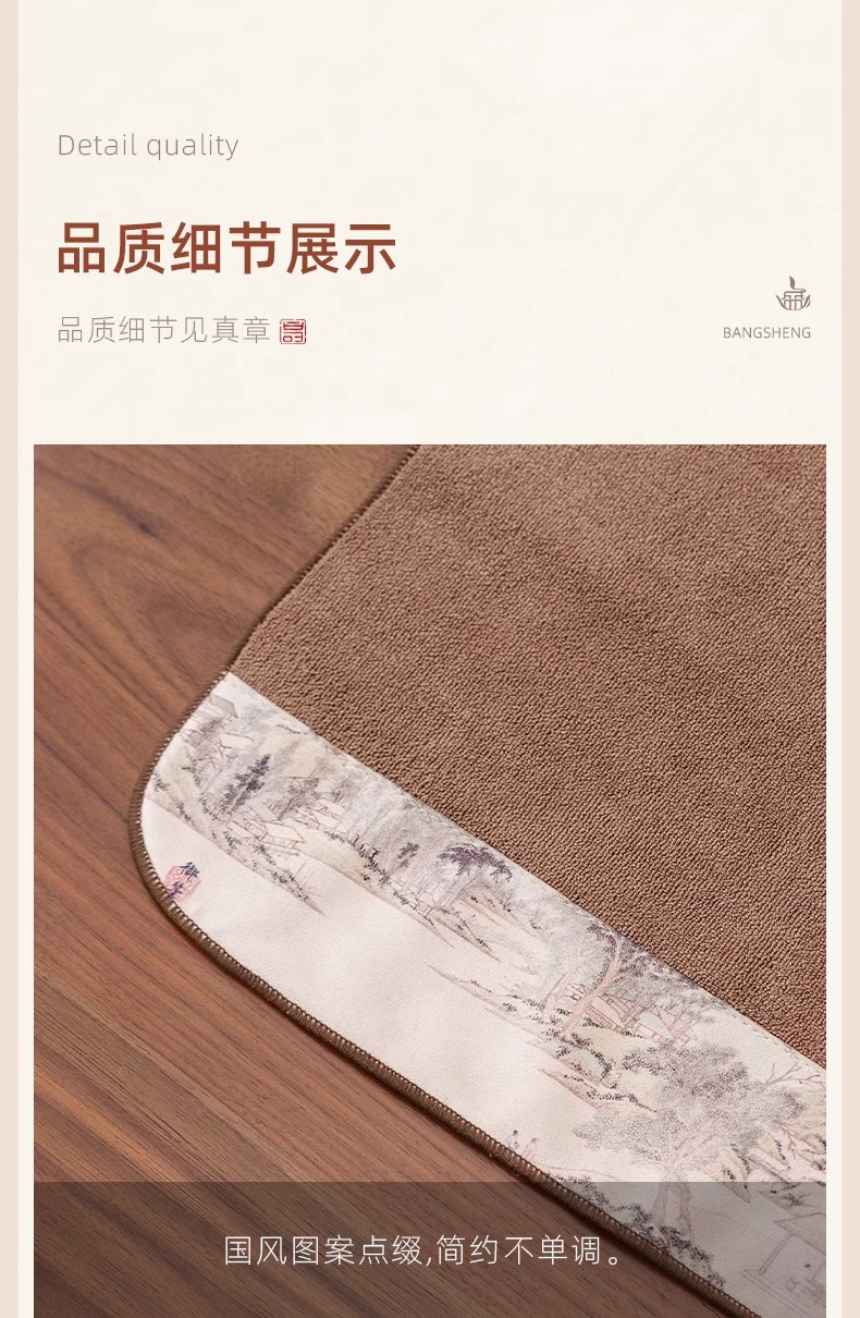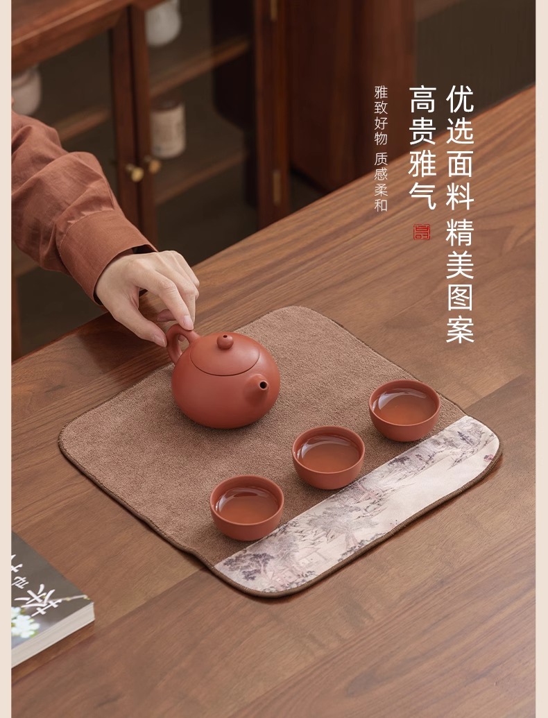 双面两用茶铺茶垫干泡席垫禅意功夫竹席茶几垫家用茶盘垫台隆金藤纹席方如意意竹(20*40cm)花语彩绘茶巾花岛夕阳(30*30cm)