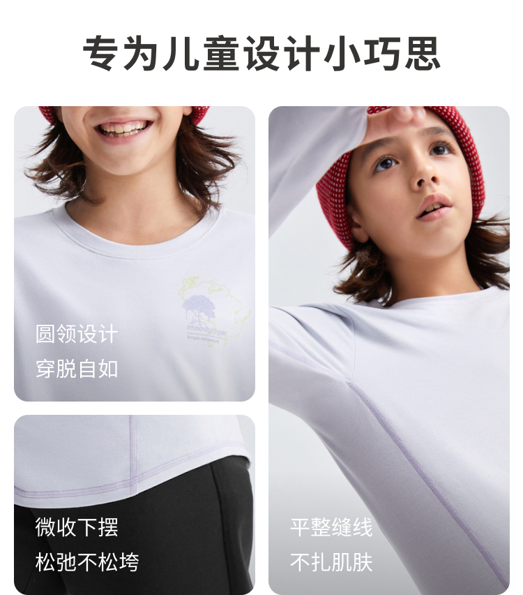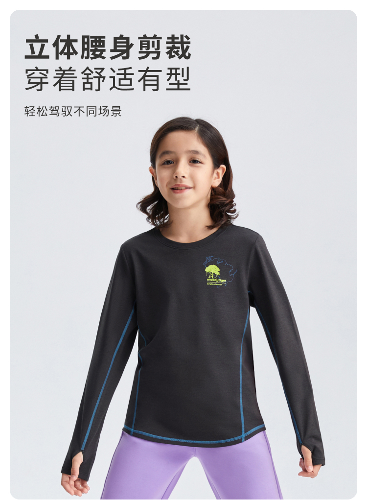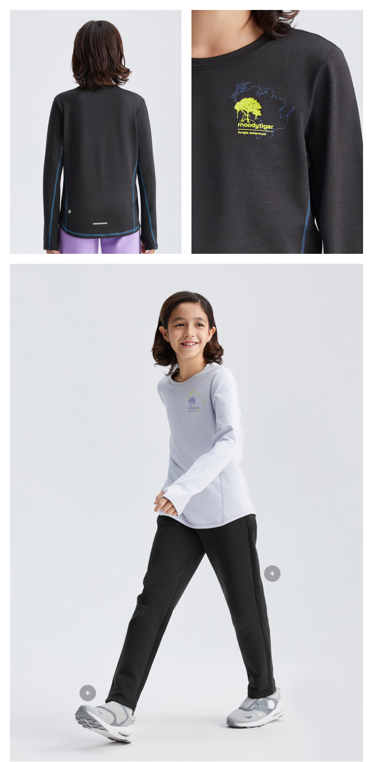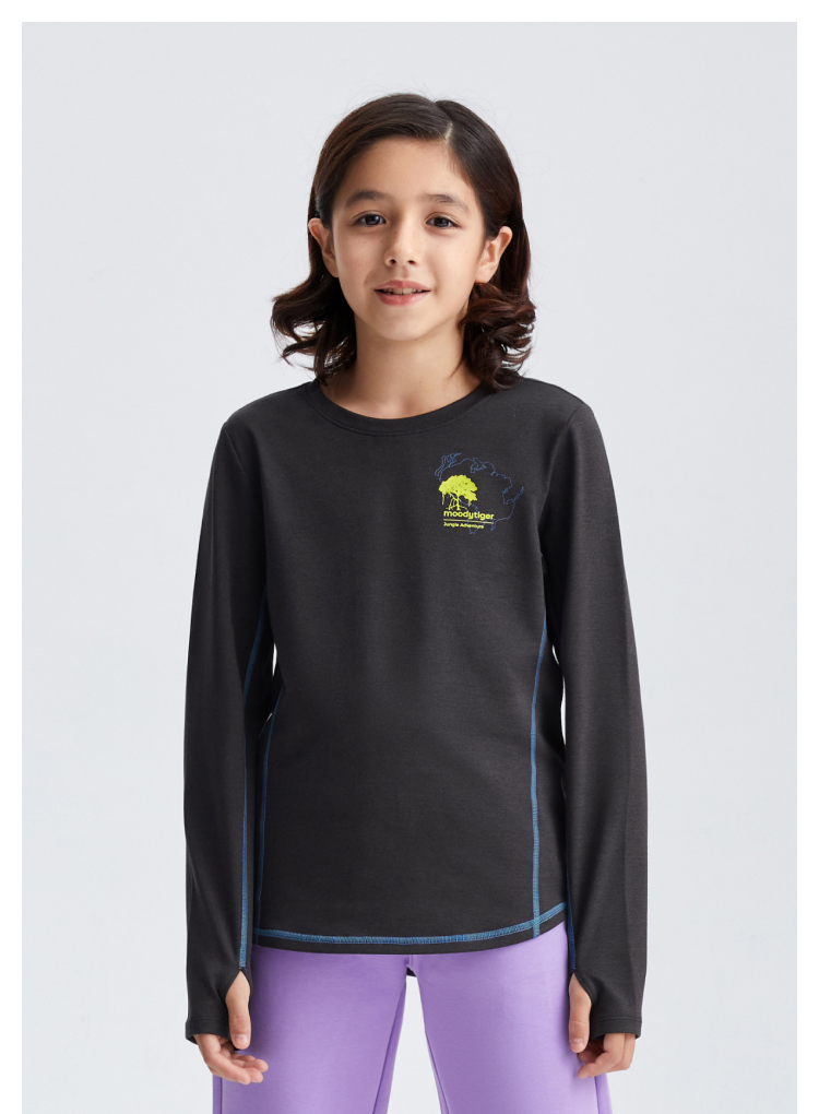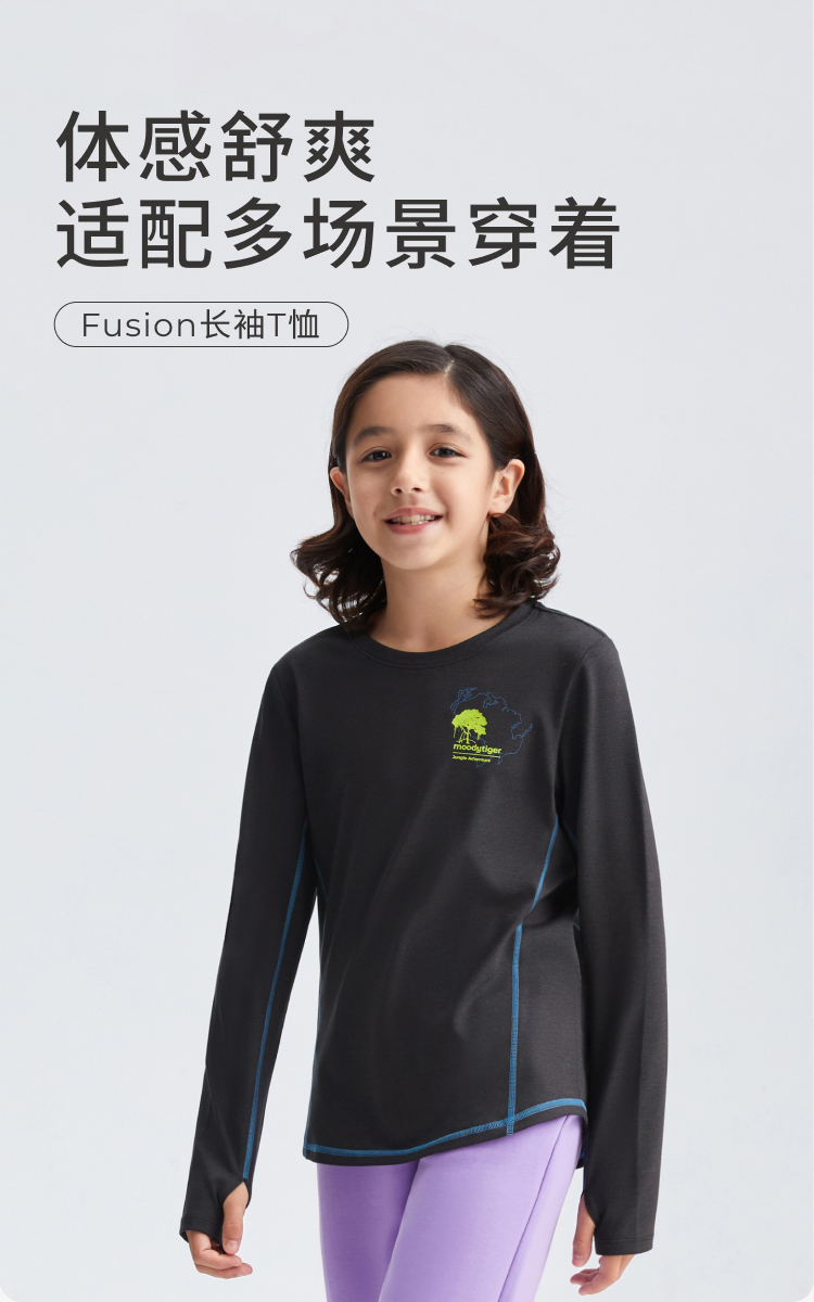 moodytiger儿童T恤25春新款男女童Fusion运动长袖上衣【合并DR】